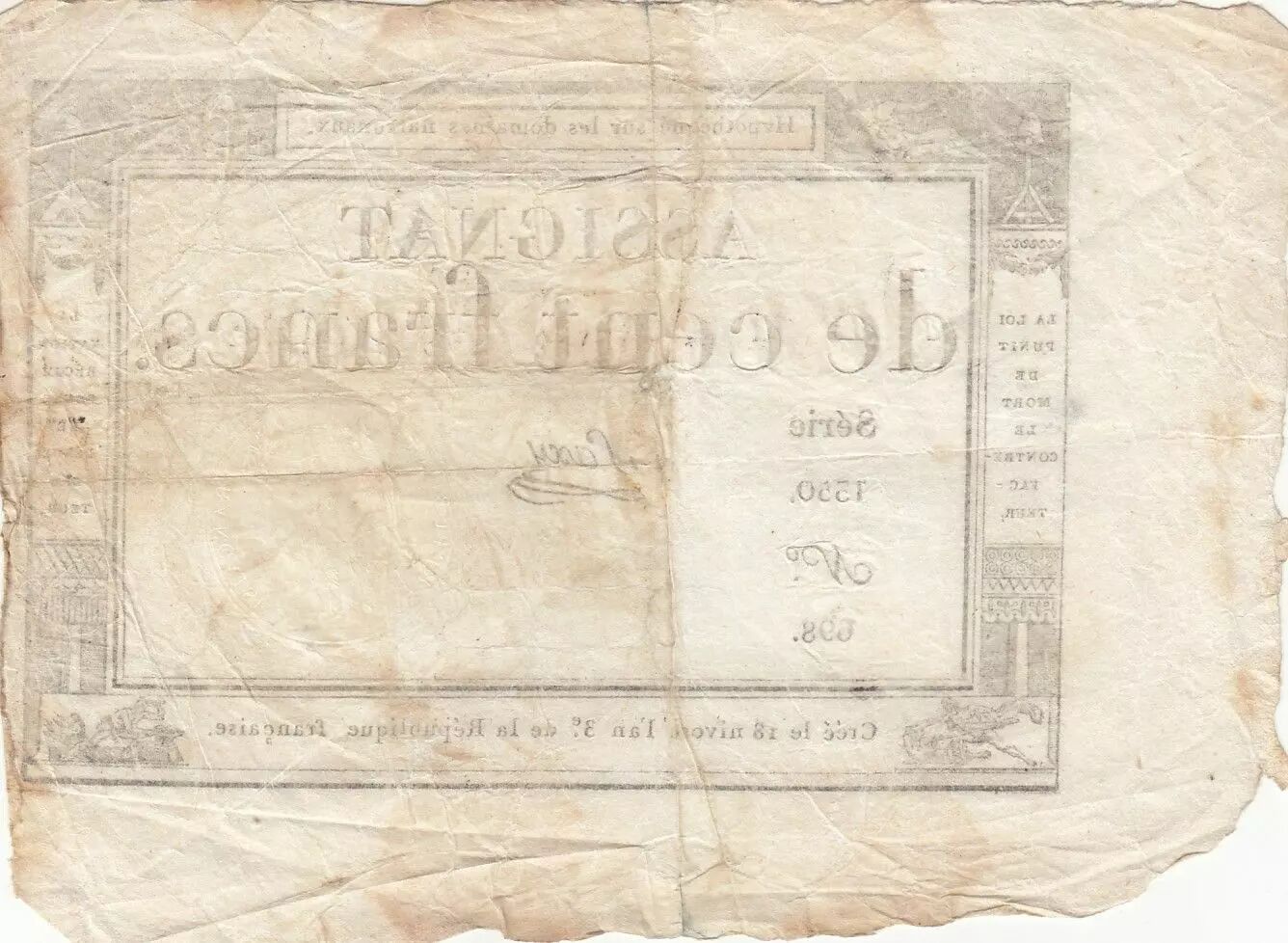 Accueil > Billets Français > Assignats > 100 Francs > France 100 Francs - 18 Nivose An III - (07.01.1795) - Sign. Saxy - Série 1350
