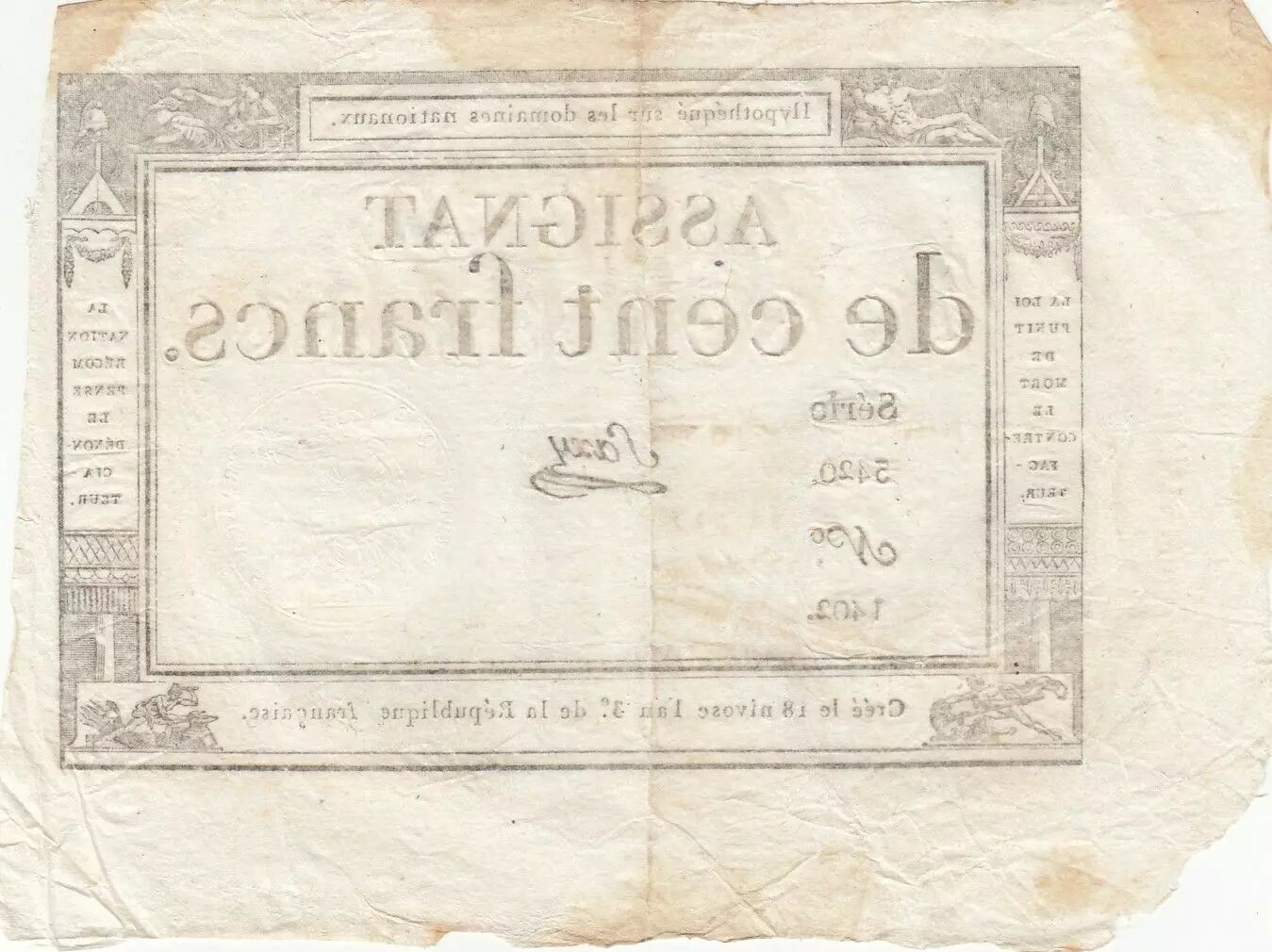 Accueil > Billets Français > Assignats > 100 Francs > France 100 Francs - 18 Nivose An III - (07.01.1795) - Sign. Saxy - Série 3420