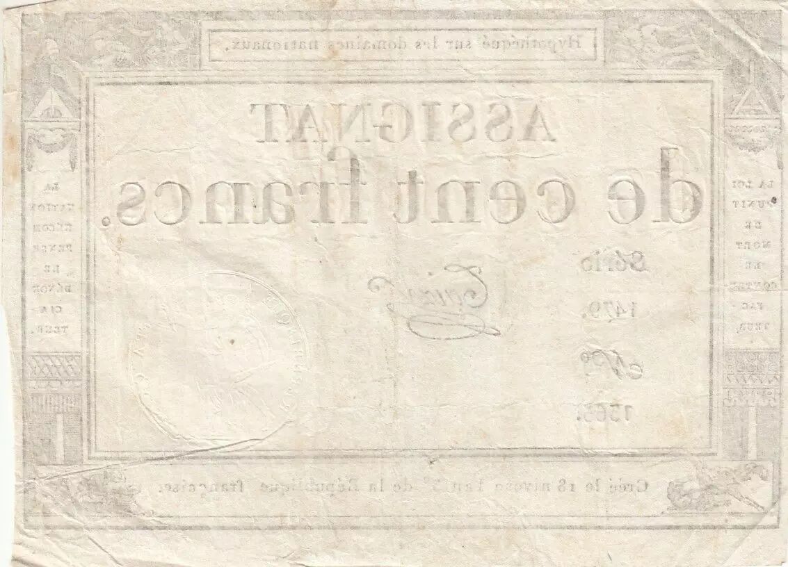 Accueil > Billets Français > Assignats > 100 Francs > France 100 Francs - 18 Nivose An III - (07.01.1795) - Sign. Taizy - Série 1479