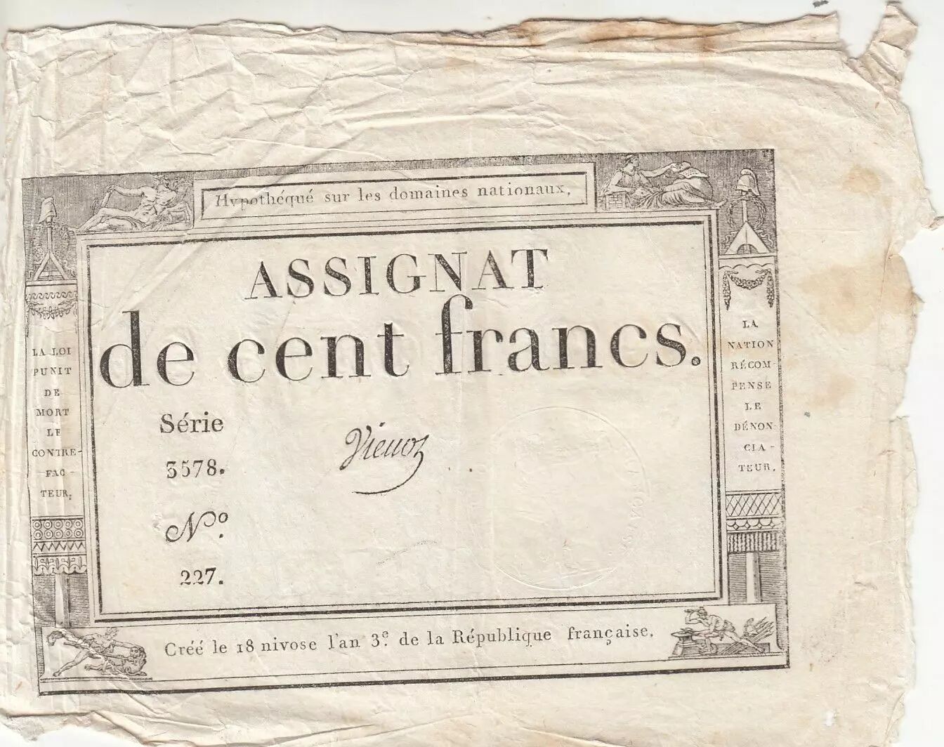 Banknote France 100 Francs - 18 Nivose An III - (07.01.1795) - Sign. Vienoz - Serial 3578