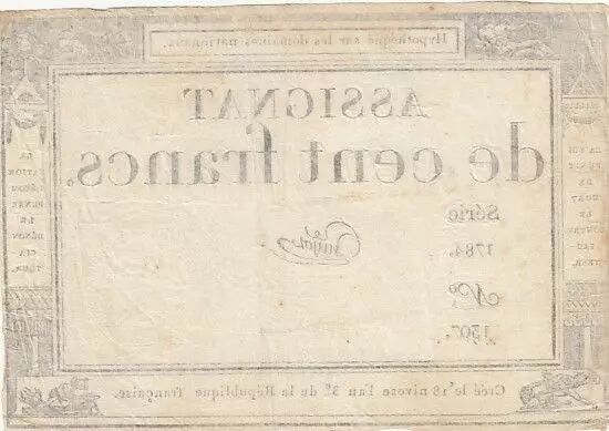 Banknote France 100 francs - 18 Nivose An III - 1794 - Sign. Guyon - Serial 1784