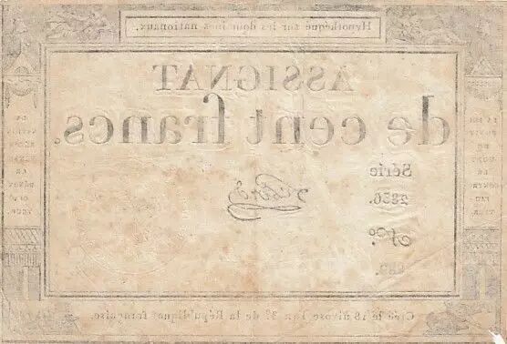 Billet France 100 francs - 18 Nivose An III - 1794 - Sign. Lehord - Série 2836