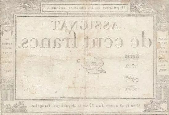 Home > > France 100 francs - 18 Nivose An III - 1794 - Sign. Taizy - Serial 1719