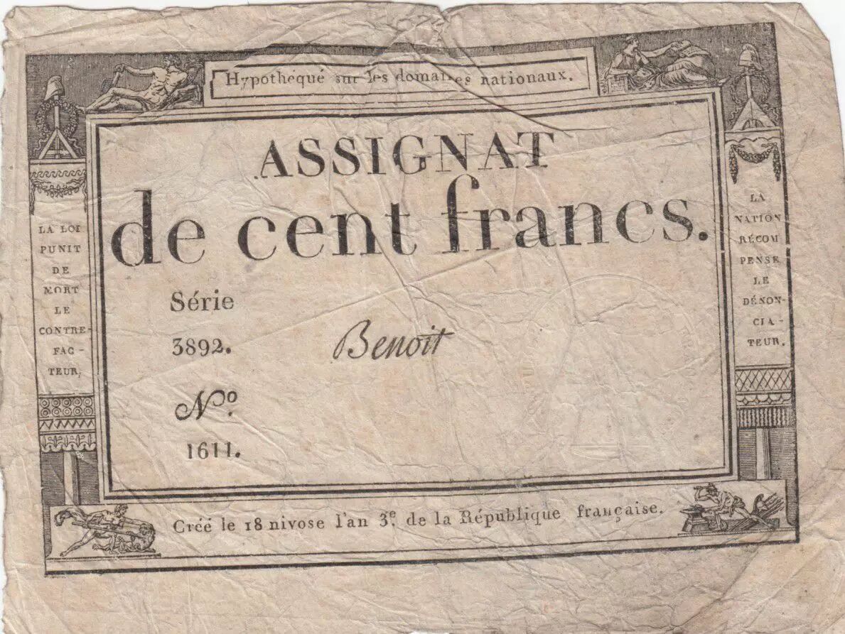 Billet France 100 Francs 18 Nivose An III - 7.1.1795 - Sign. Benoit