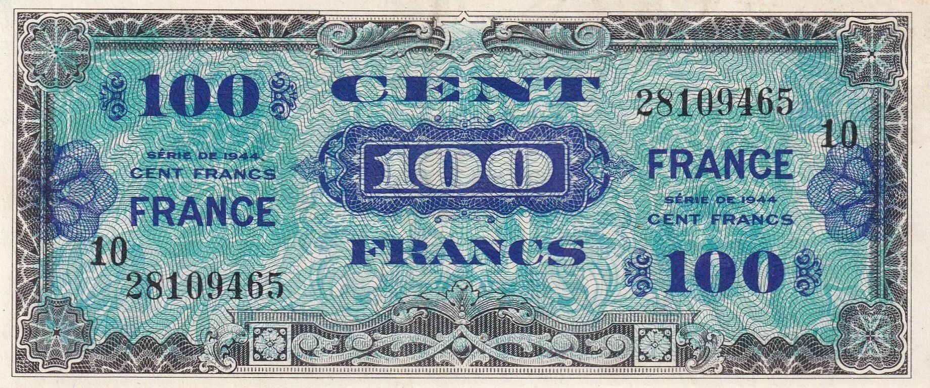 Home > French Banknotes > Treasury Bills > 100 Francs Banknotes > France 100 Francs Allied Military Currency - 1944 - Serial 10