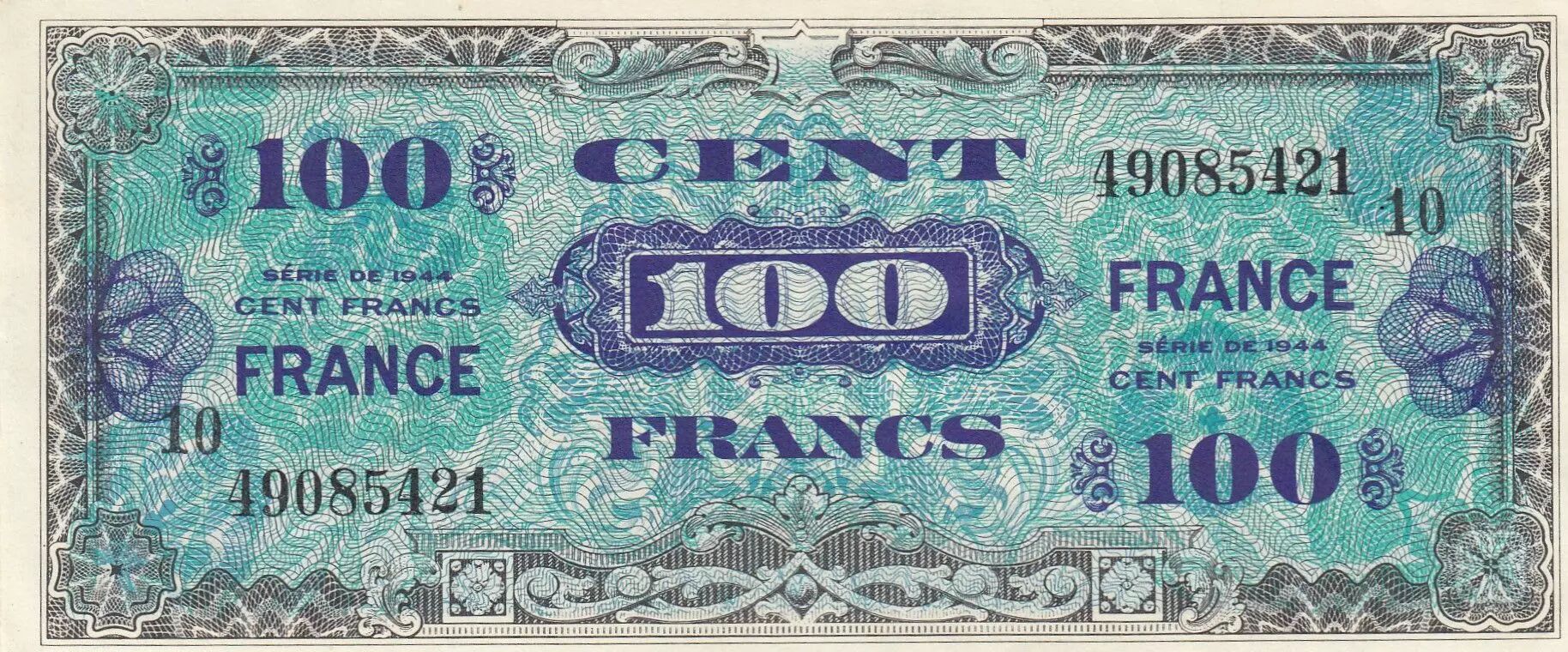 Banknote France 100 Francs - Allied Military Currency - 1944 - Serial 10