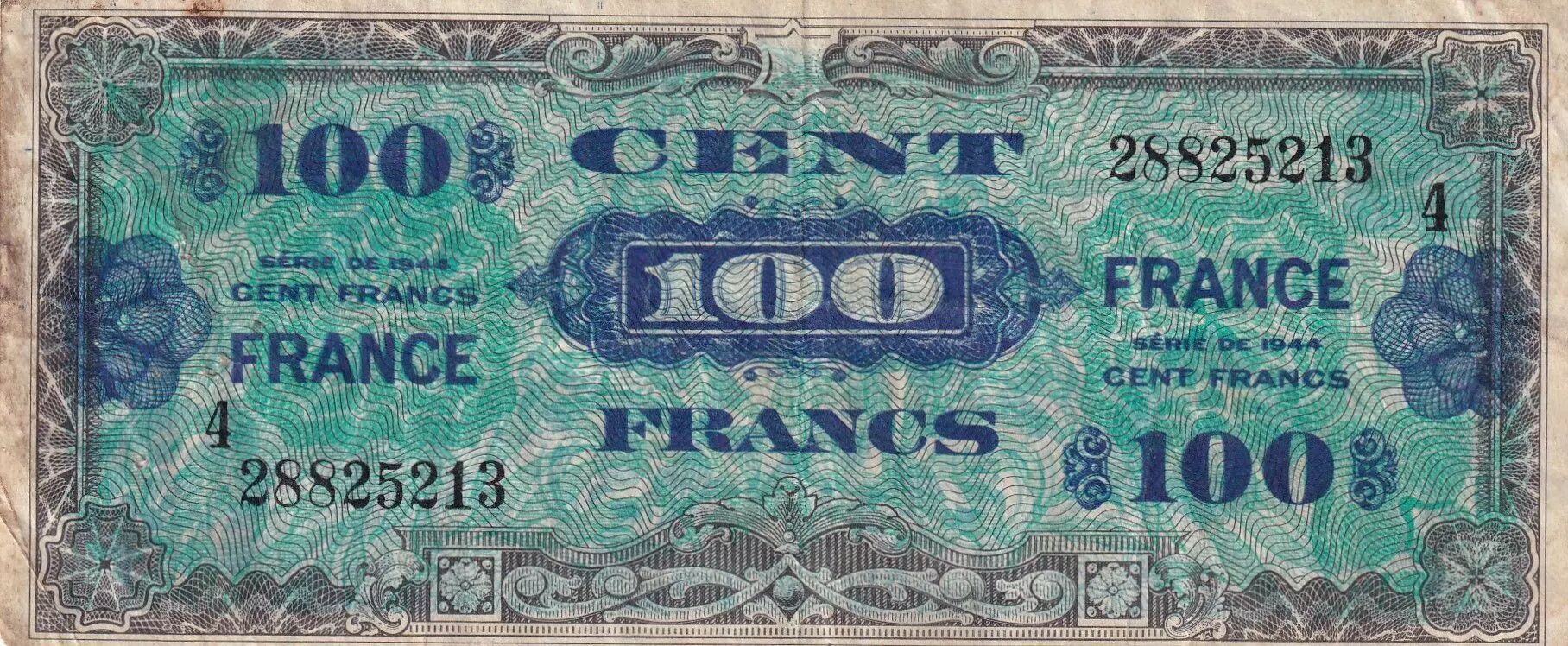 Banknote France 100 Francs Allied Military Currency - 1944 - Serial 4 - 28825213
