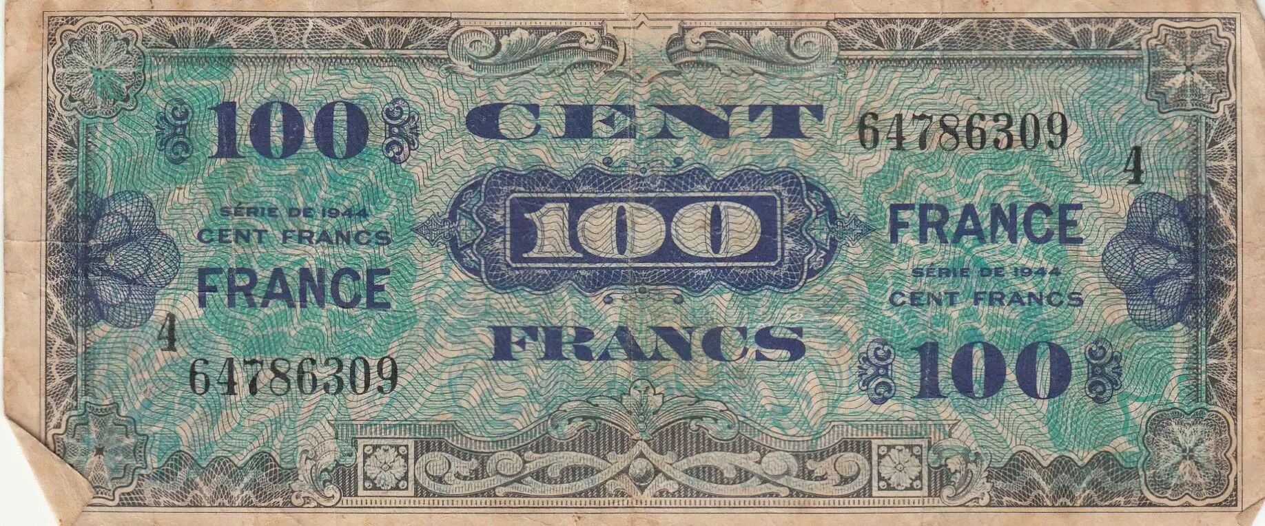Banknote France 100 Francs - Allied Military Currency - 1944 - Serial 4