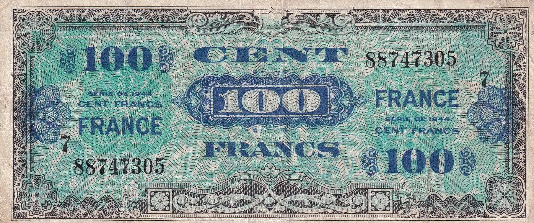 Banknote France 100 Francs Allied Military Currency - 1945 - Serial 7