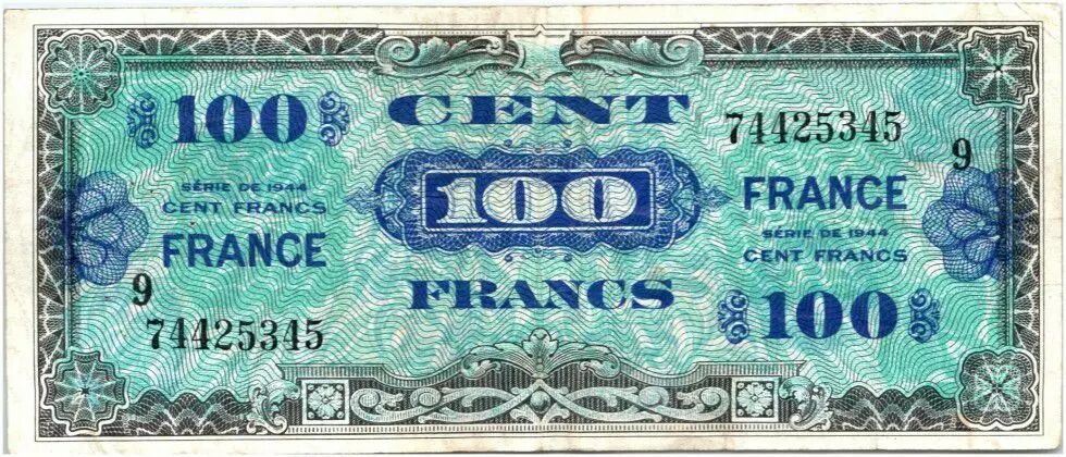 Home > French Banknotes > Treasury Bills > France 100 Francs Allied Military Currency - 1945 Serial 9