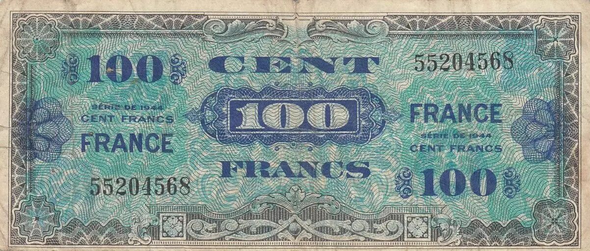 Banknote France 100 Francs - American printing - 1944 - without serial - Num 55204568
