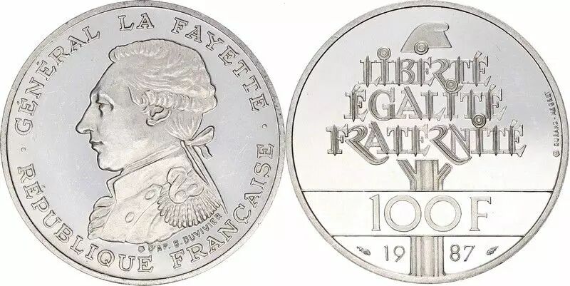 Pièce France 100 Francs Argent Général La Fayette - 1987