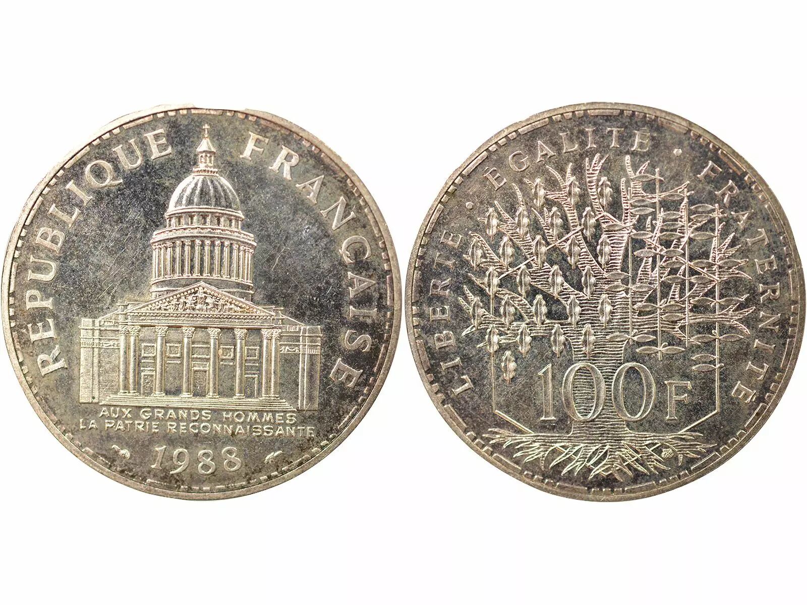 Pièce France 100 Francs Argent, Panthéon - 1988 Pessac