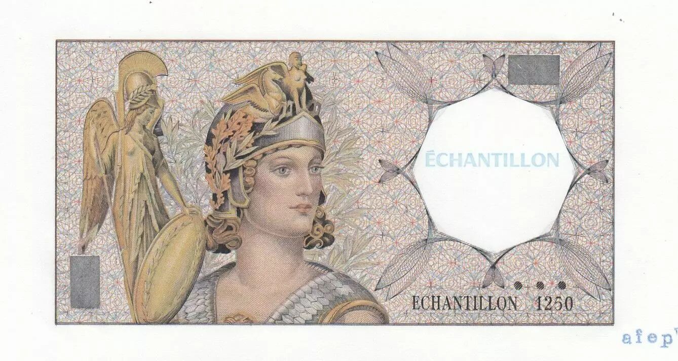 Banknote France 100 Francs - Athena - Echantillon Echantillon 1250 - Type Montesquieu with afep pad