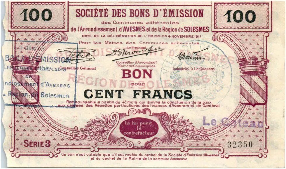 Billet France 100 Francs Avesnes Et Solesmes Le Cateau