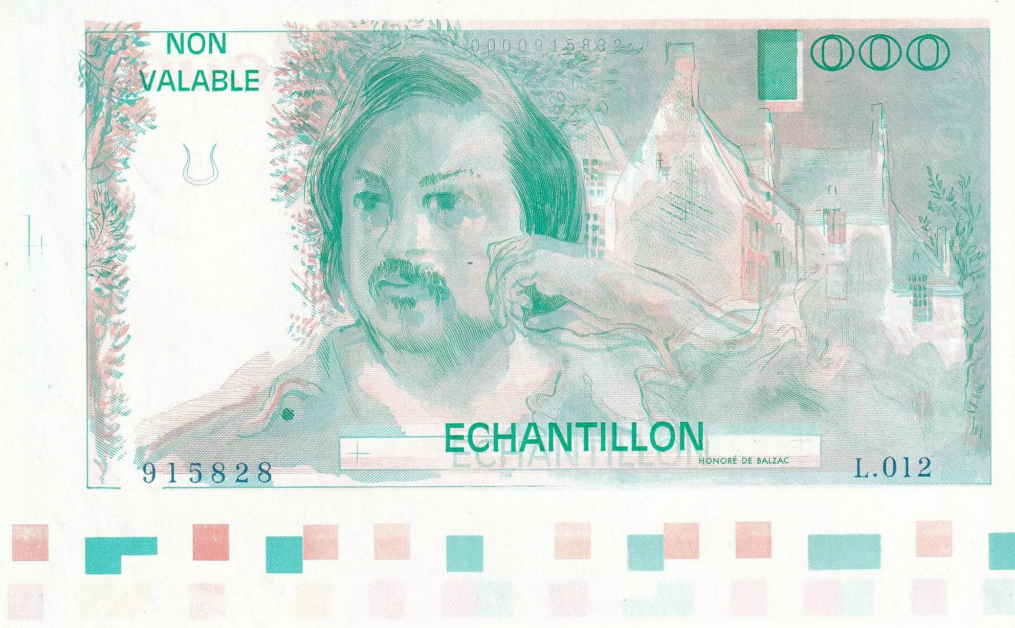 Accueil > Archivage > France 100 Francs - Balzac 1980 - Epreuve avec filigrane et code couleur - Série L.012 - Echantillon - NEUF