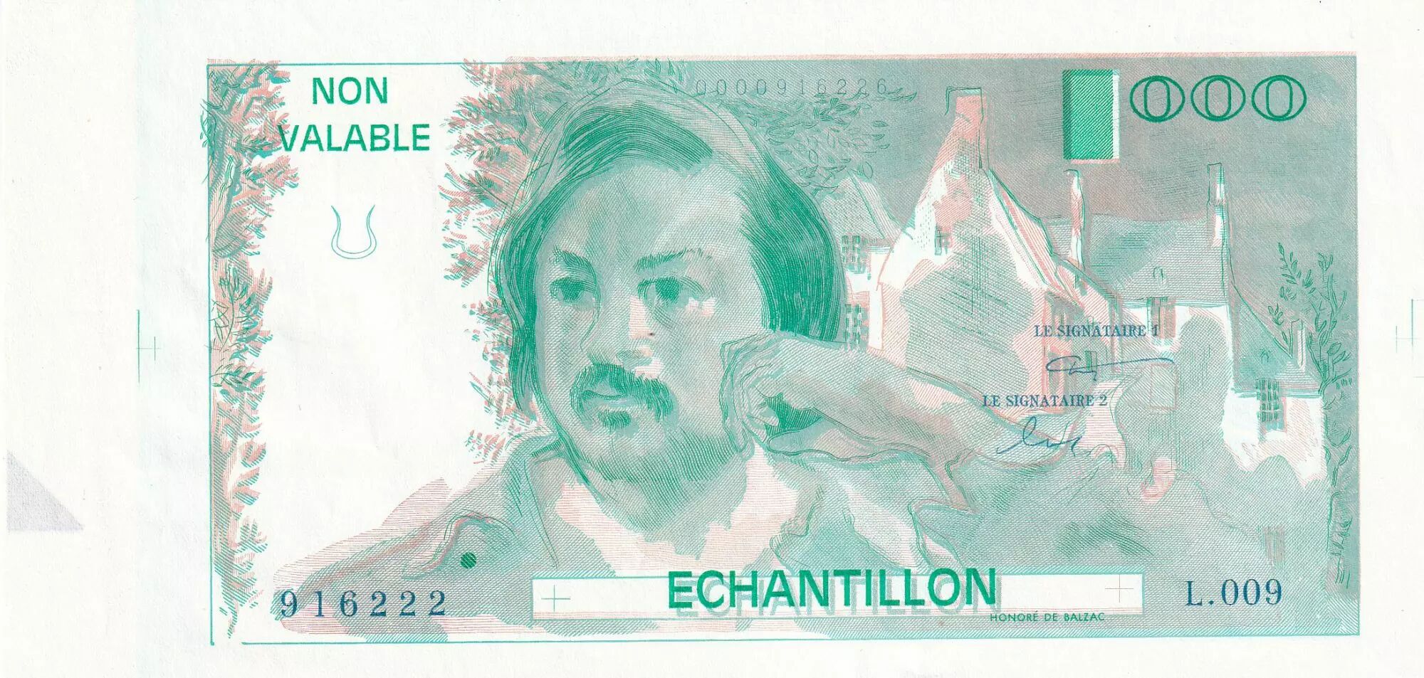 Accueil > Archivage > France 100 Francs - Balzac 1980 - Epreuve recto avec filigrane et signature - Série L.009 - Echantillon - P.NEUF