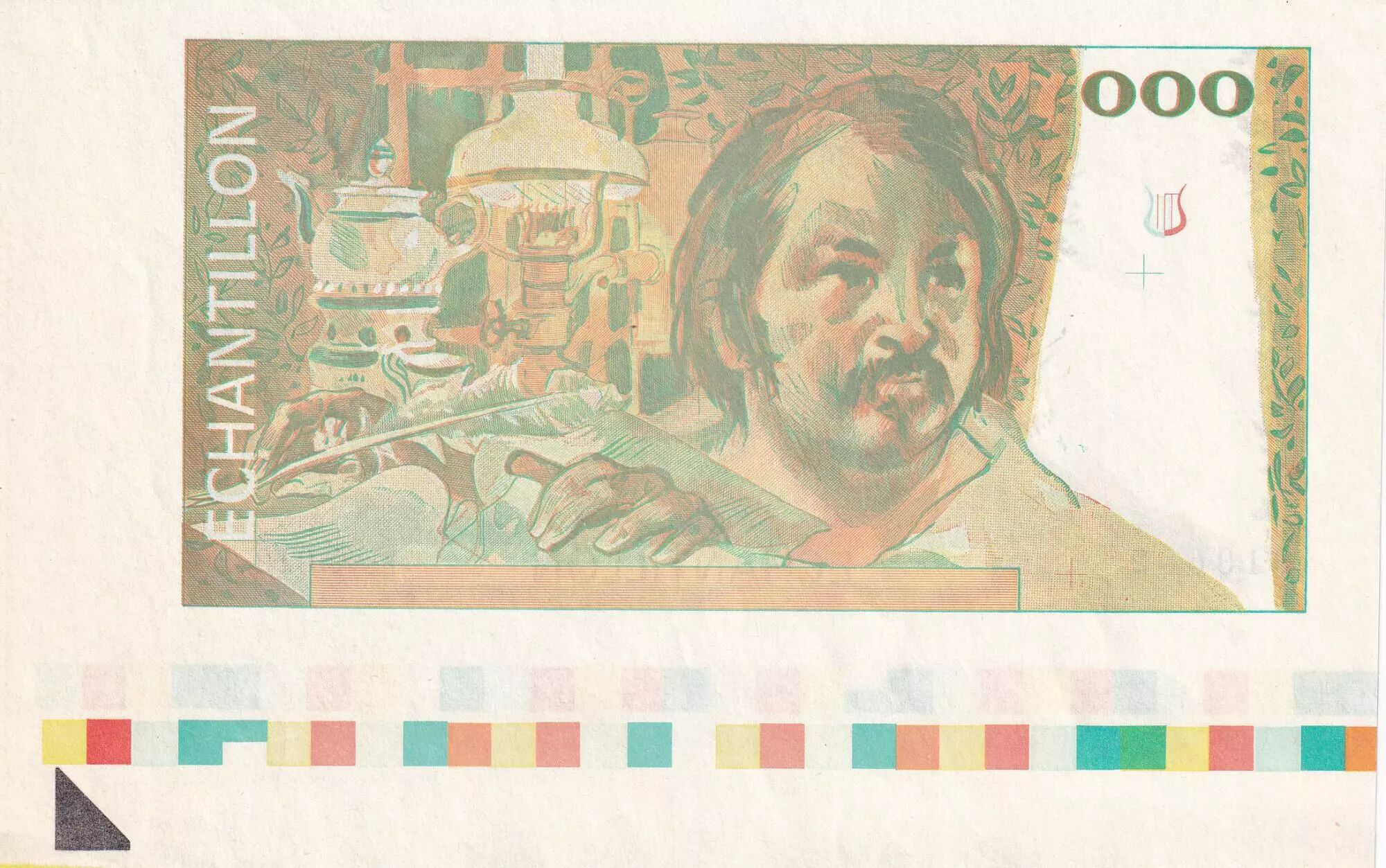 Accueil > Archivage > France 100 Francs - Balzac 1980 - Epreuve recto verso sans filigrane avec code couleur - Série K.012 Echantillon - NEUF