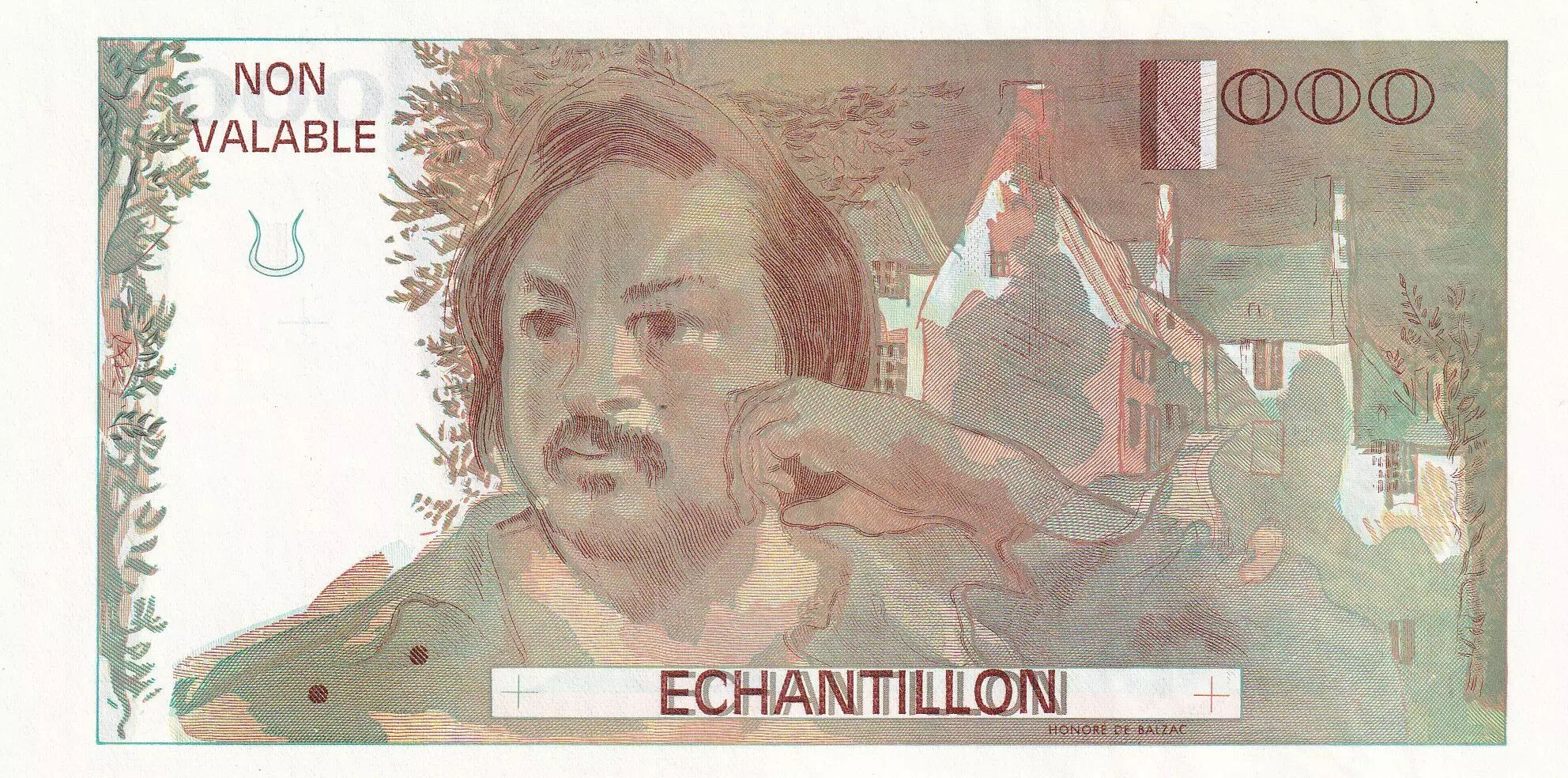 Banknote France 100 Francs - Balzac 1980 - Proof recto verso cuting watermark - Echantillon - UNC
