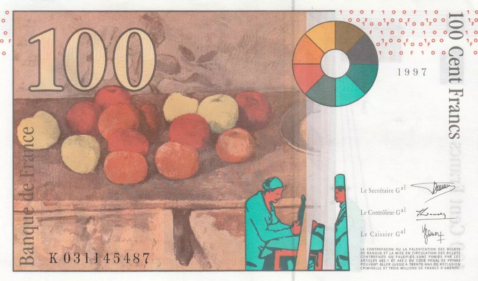 Home > > France 100 Francs - Cezanne - 1997 - Serial K031