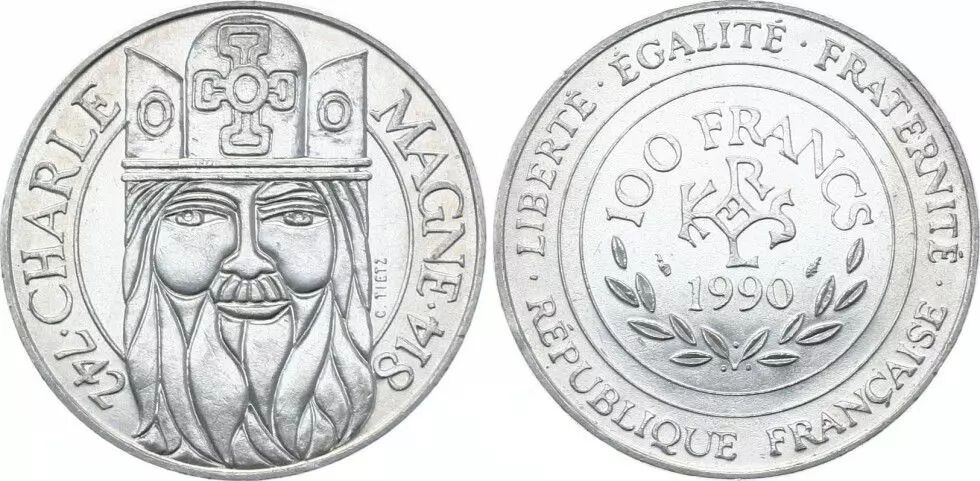 Coin France 100 Francs Charlemagne - 1990 Silver