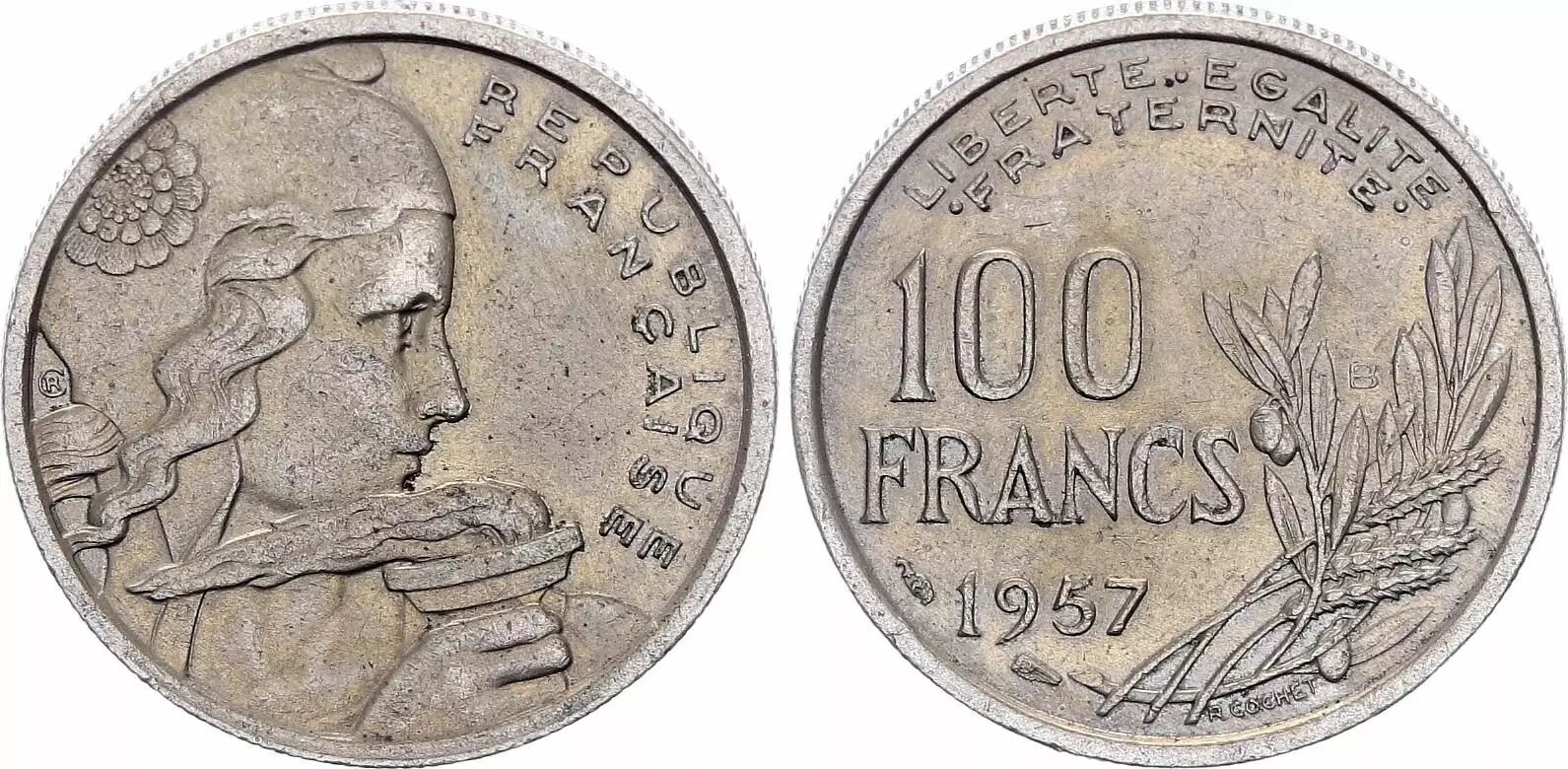 Home > French coins (470 à 2002) > Modern Currencies (1789 to 2002) > 100 Francs > France 100 Francs Cochet - 1957 B Beaumont-le Roger