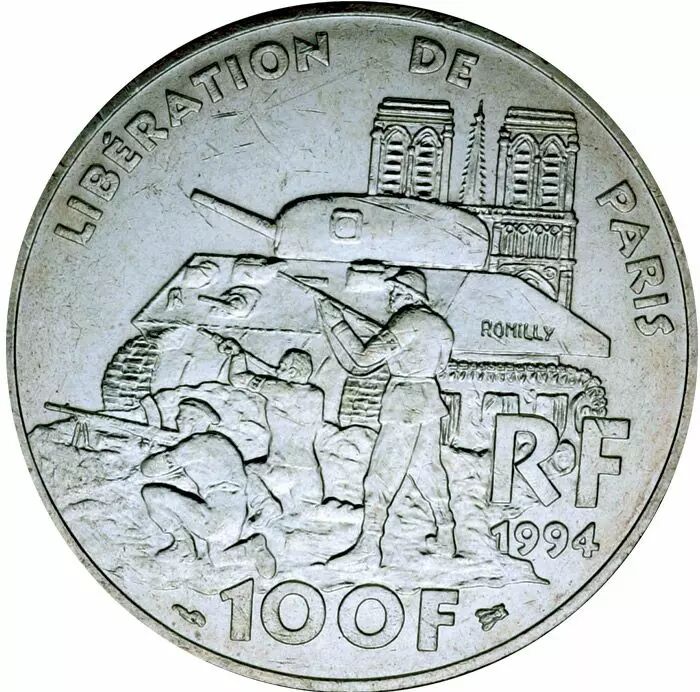 Accueil > Archivage > archivage-Monnaies françaises (470 à 2002) > France 100 Francs Commémo. Libération de Paris FRANCE 1994 (SUP)