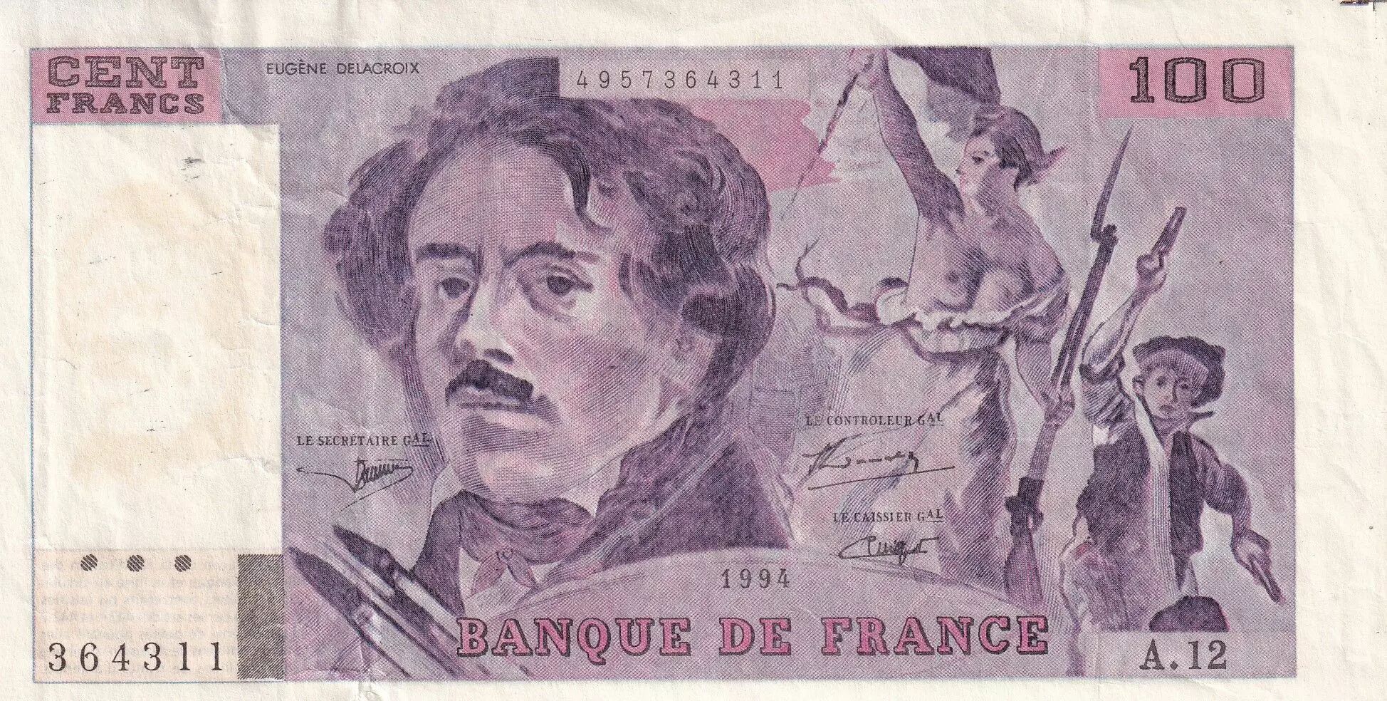 Home > > France 100 Francs - Contrefeit Delacroix - 1994 - Serial A.12