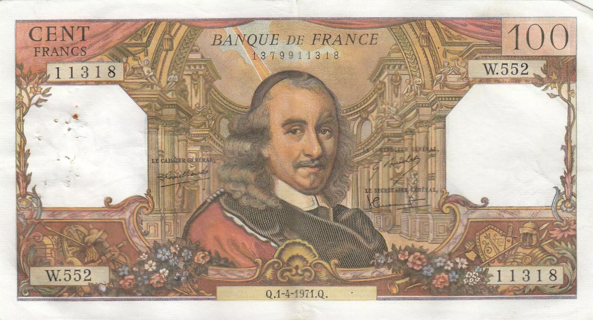 Accueil > Archivage > archivage-Billets Français > France 100 Francs - Corneille - 01-04-1971 - Série W.552