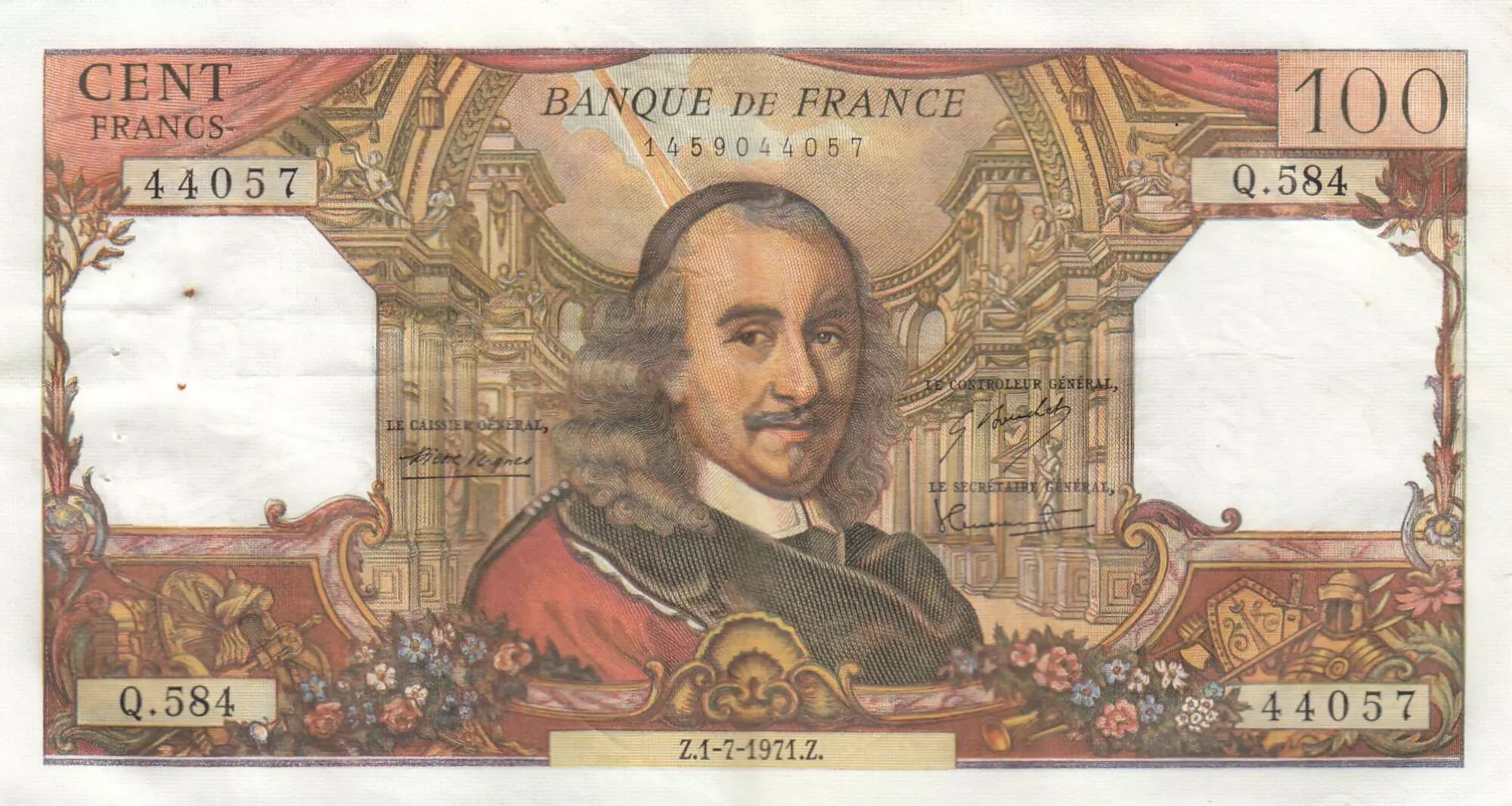 Accueil > Archivage > archivage-Billets Français > France 100 Francs - Corneille - 01-07-1971 - Série Q.584