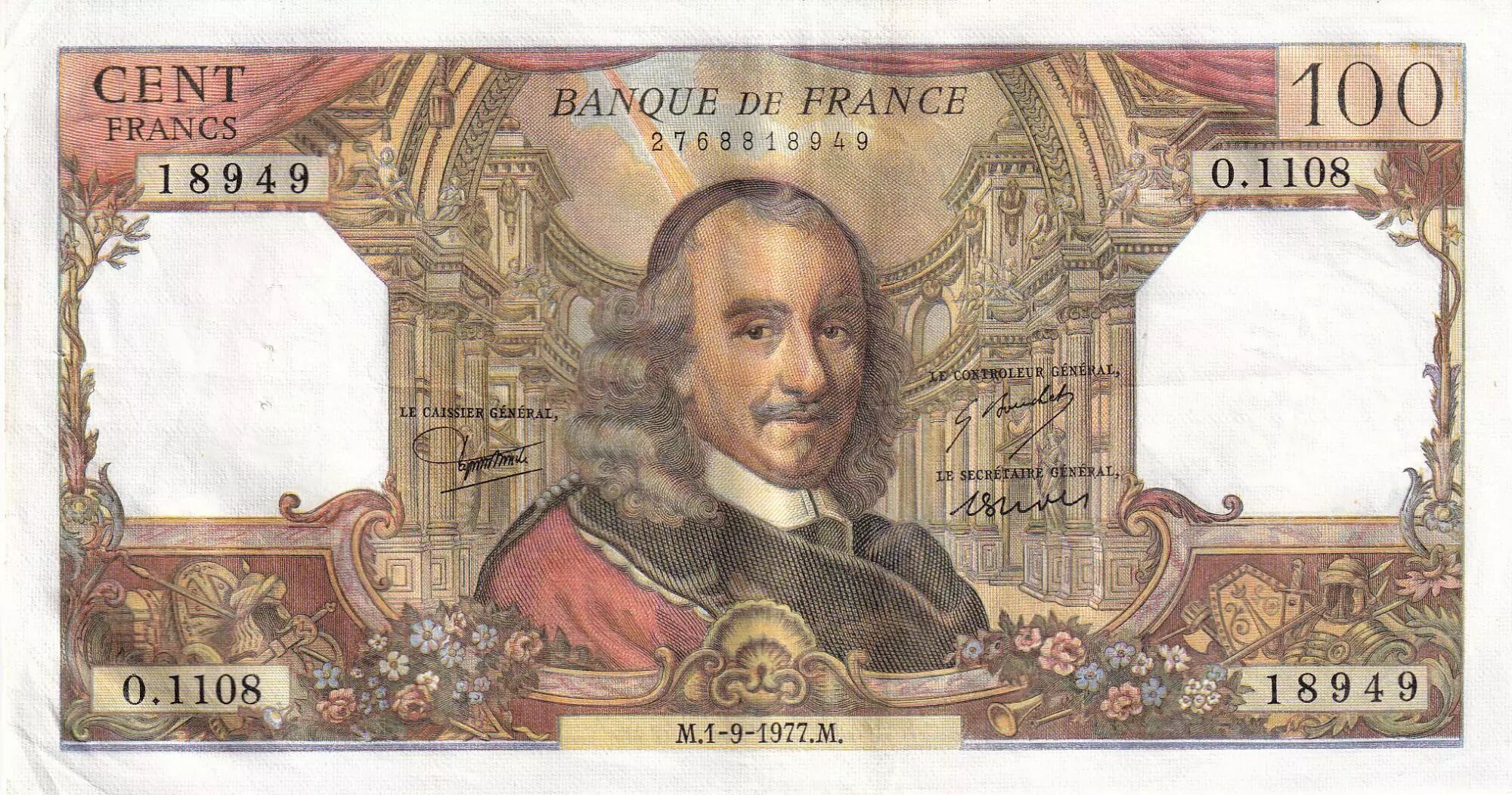 Home > > France 100 Francs - Corneille - 01-09-1977 - Serial O.1108 - P.149