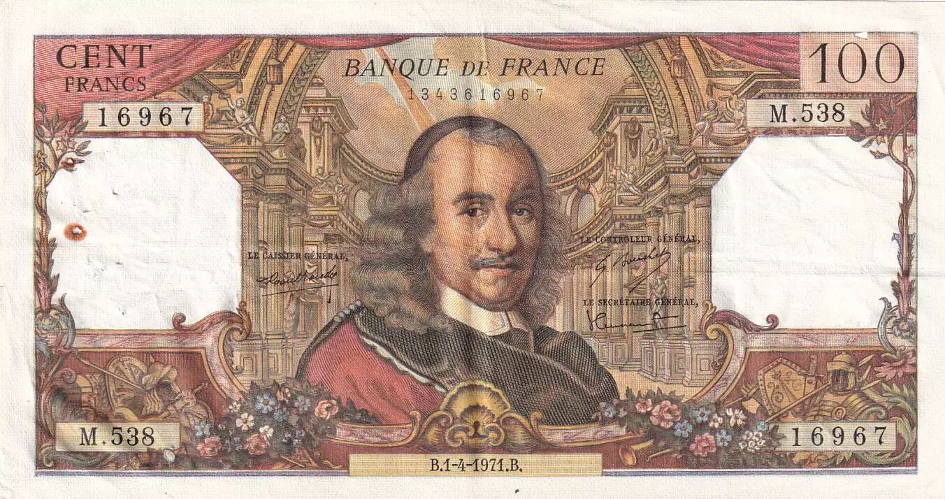 Accueil > Archivage > France 100 Francs - Corneille - 01.04.1971 - Série M.538