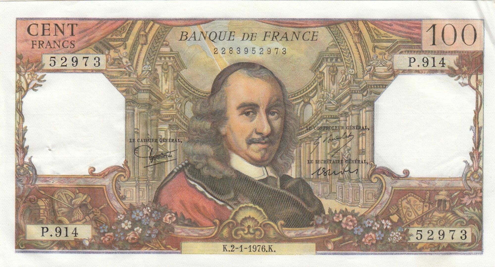 This 100 Francs Corneille banknote is a testament to French monetary history and a tribute to one of the greatest authors in French literature.