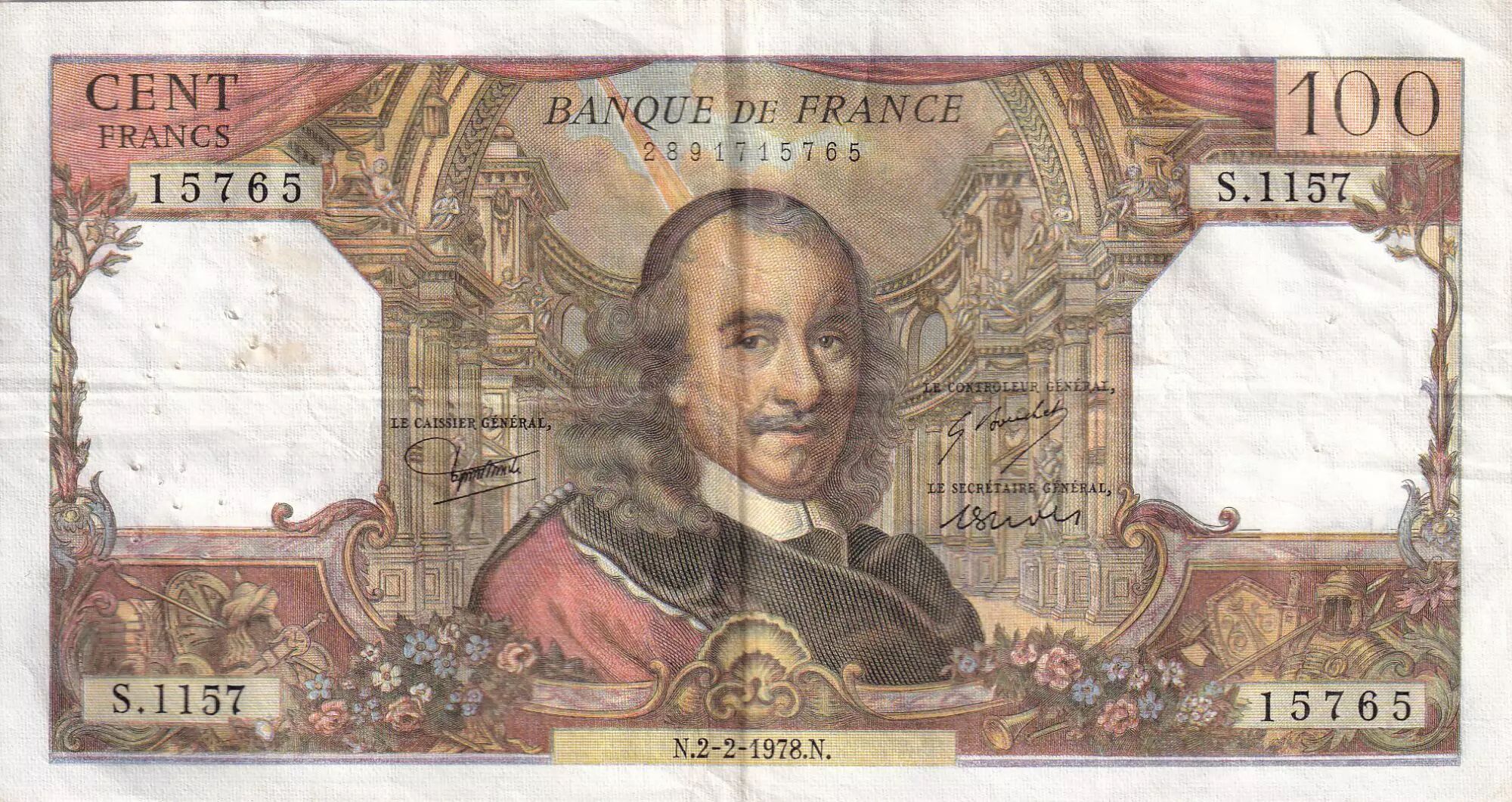 Banknote France 100 Francs - Corneille - 02-02-1978 - Serial S.1157 - P.149