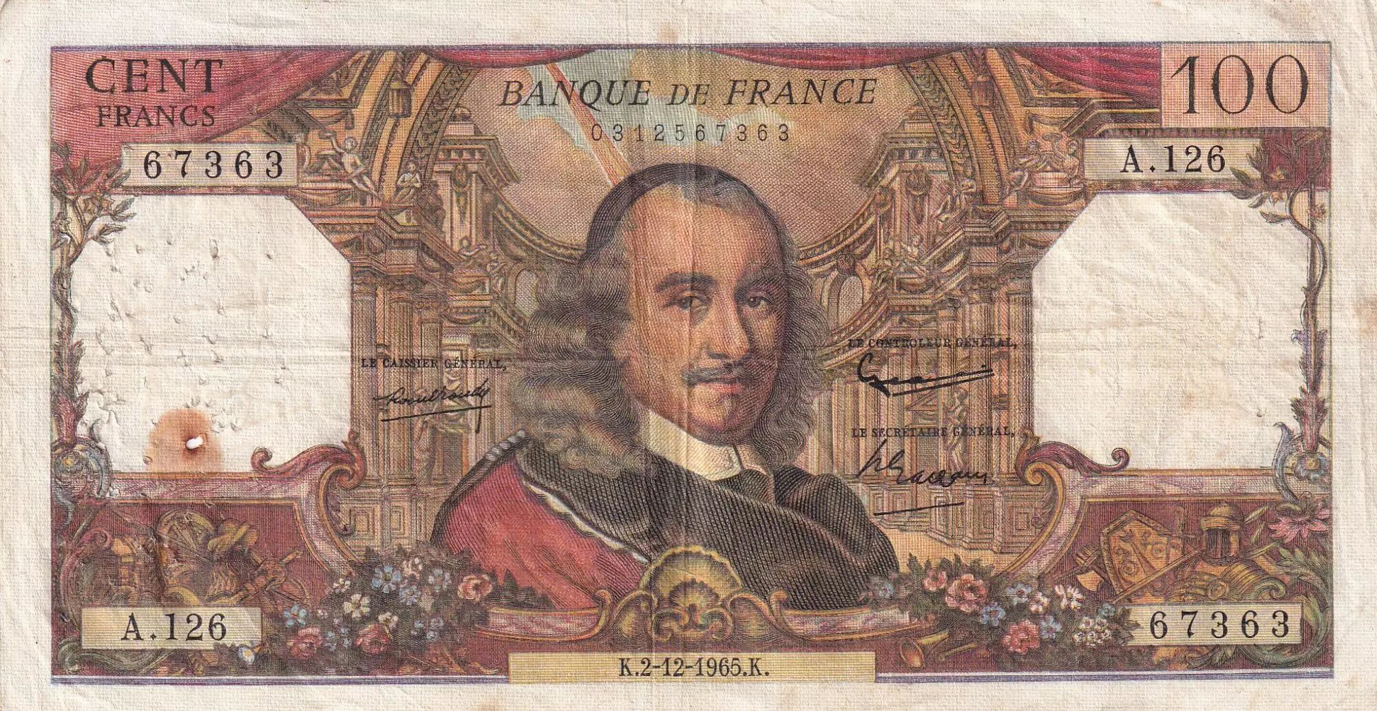 Billet France 100 Francs - Corneille - 02-12-1965 - Série A.126 - F.65.10