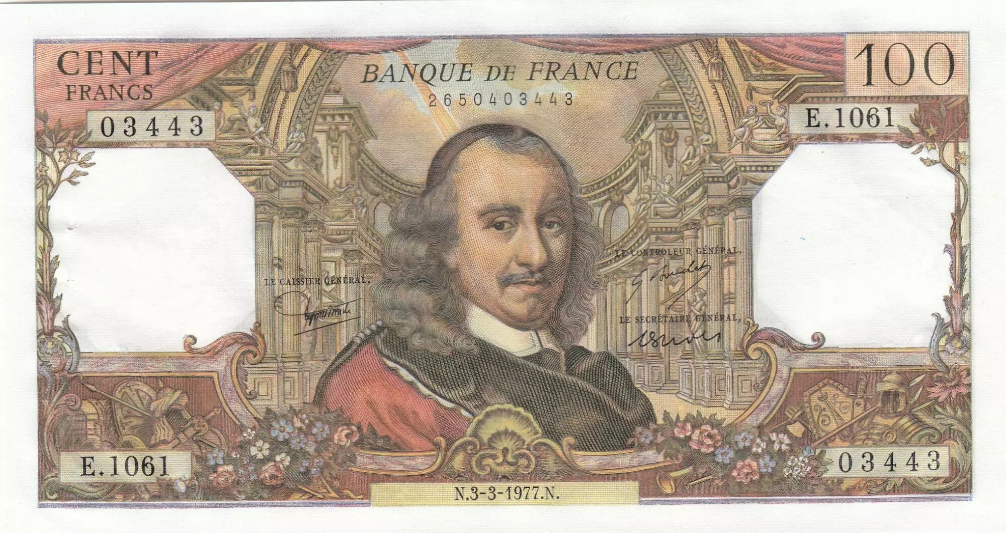 Billet France 100 Francs - Corneille - 03-03-1977 - Série E.1061