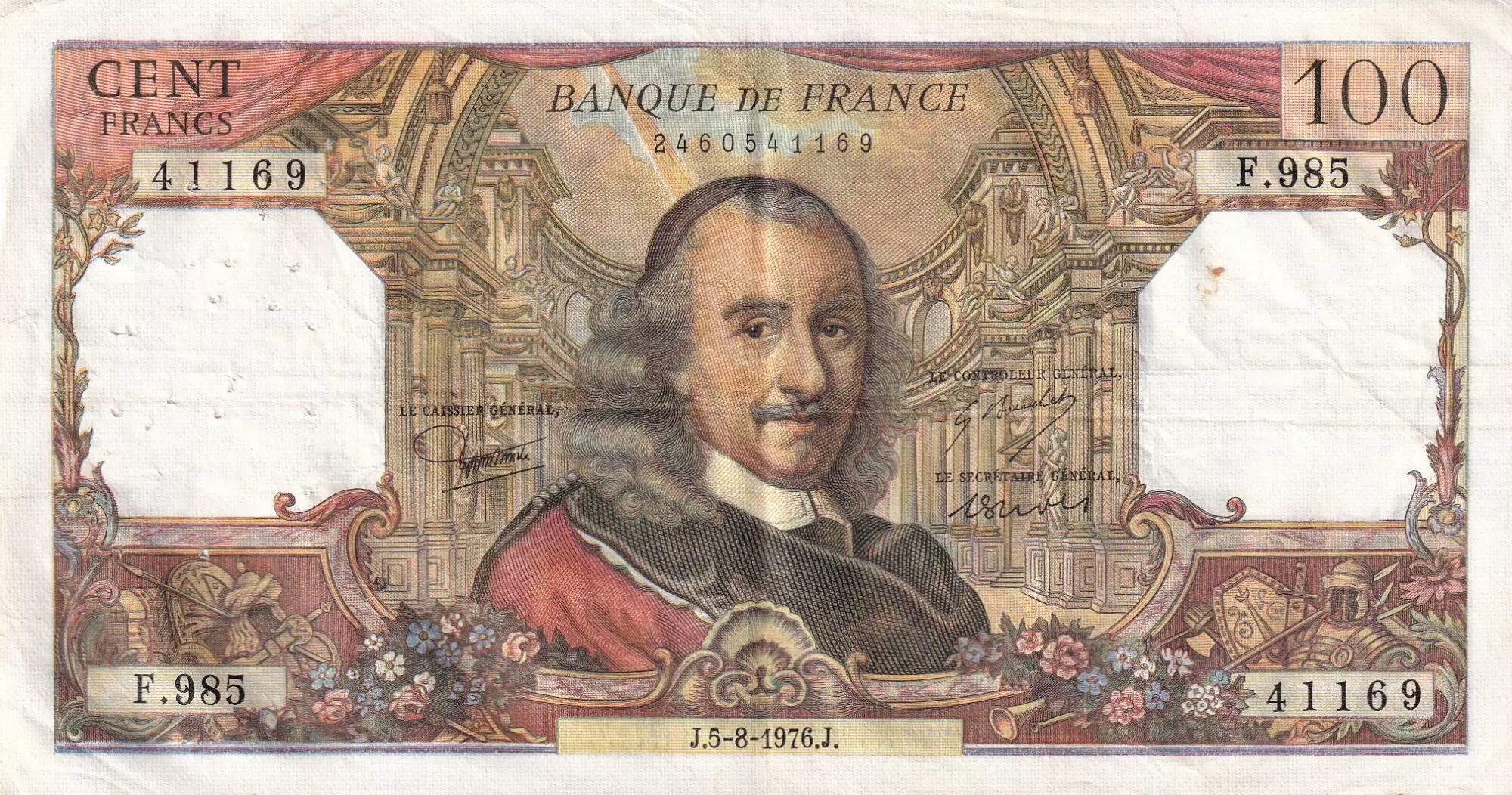 Banknote France 100 Francs - Corneille -03-06-1976 - Serial F.985