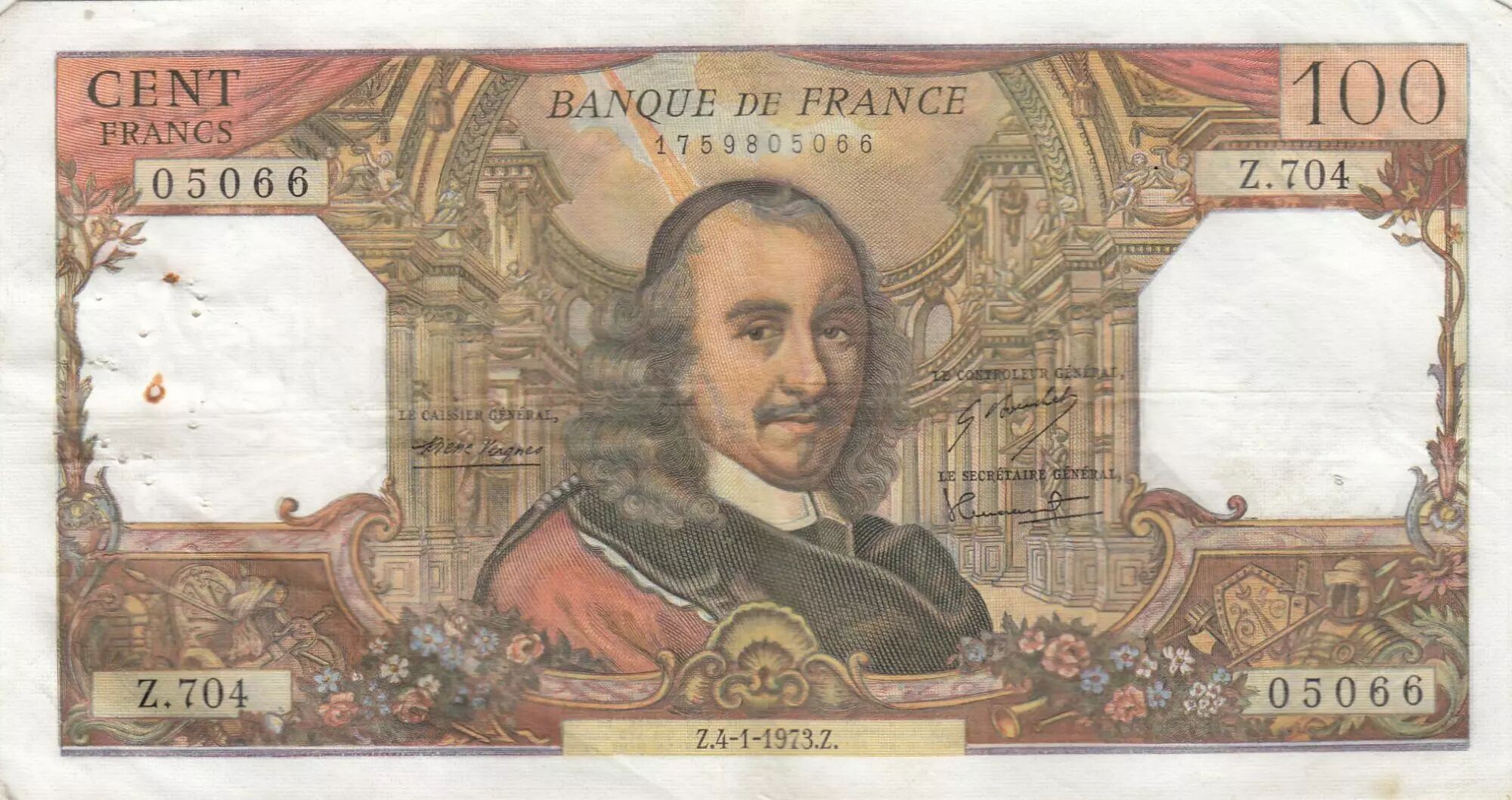 Home > > France 100 Francs - Corneille - 04-01-1973 - Serial Z.704