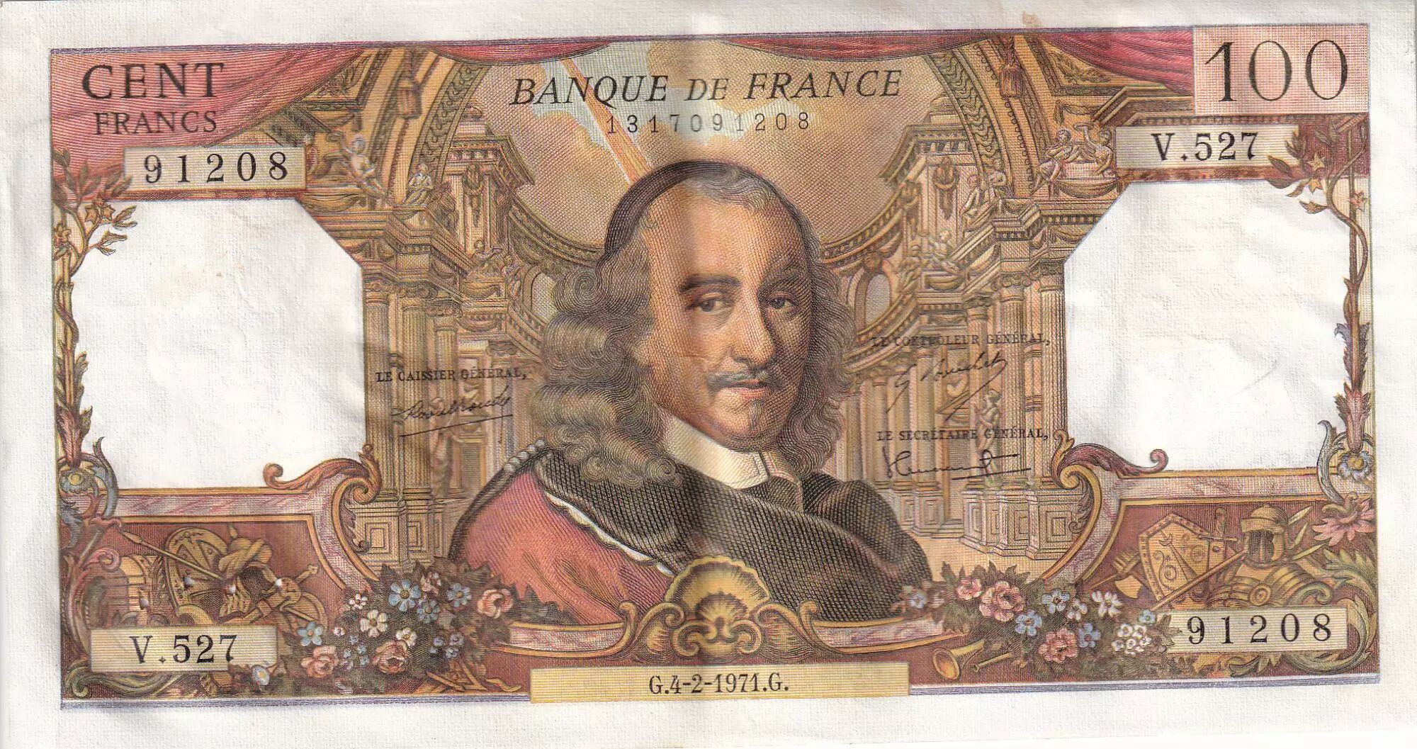 Banknote France 100 Francs - Corneille - 04-02-1971 - Serial V.527 - VF+ - P.149