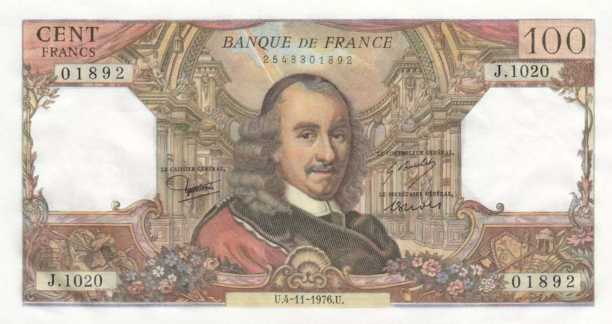 Banknote France 100 Francs - Corneille - 04-11-1976 - Serial J.1020