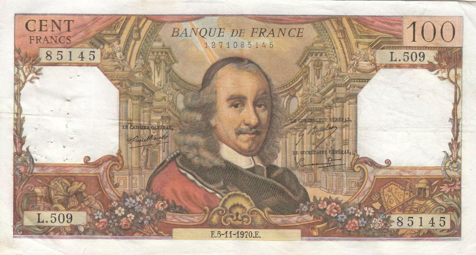 Banknote France 100 Francs - Corneille - 05-11-1970 - Serial L.509