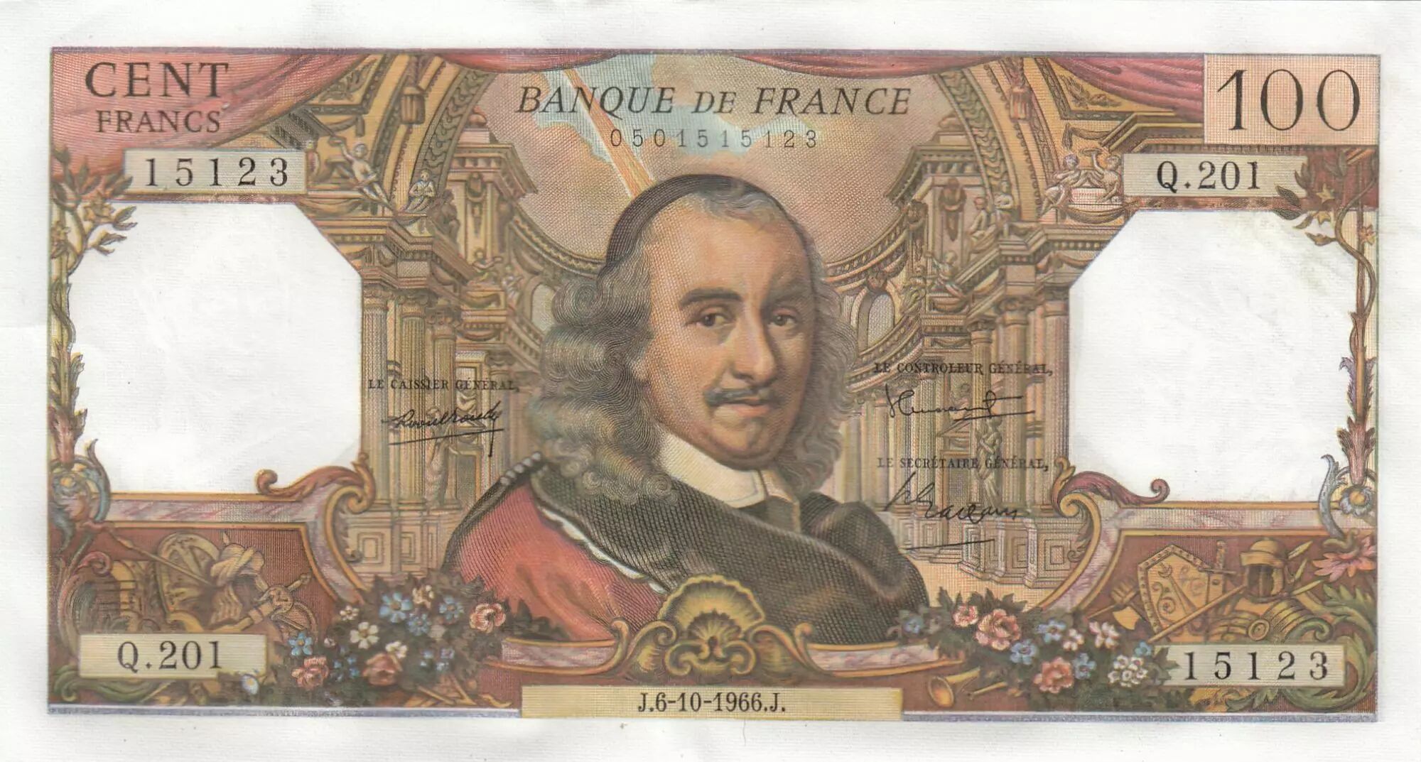 Home > > France 100 Francs Corneille - 06-10-1966 Serial Q.201