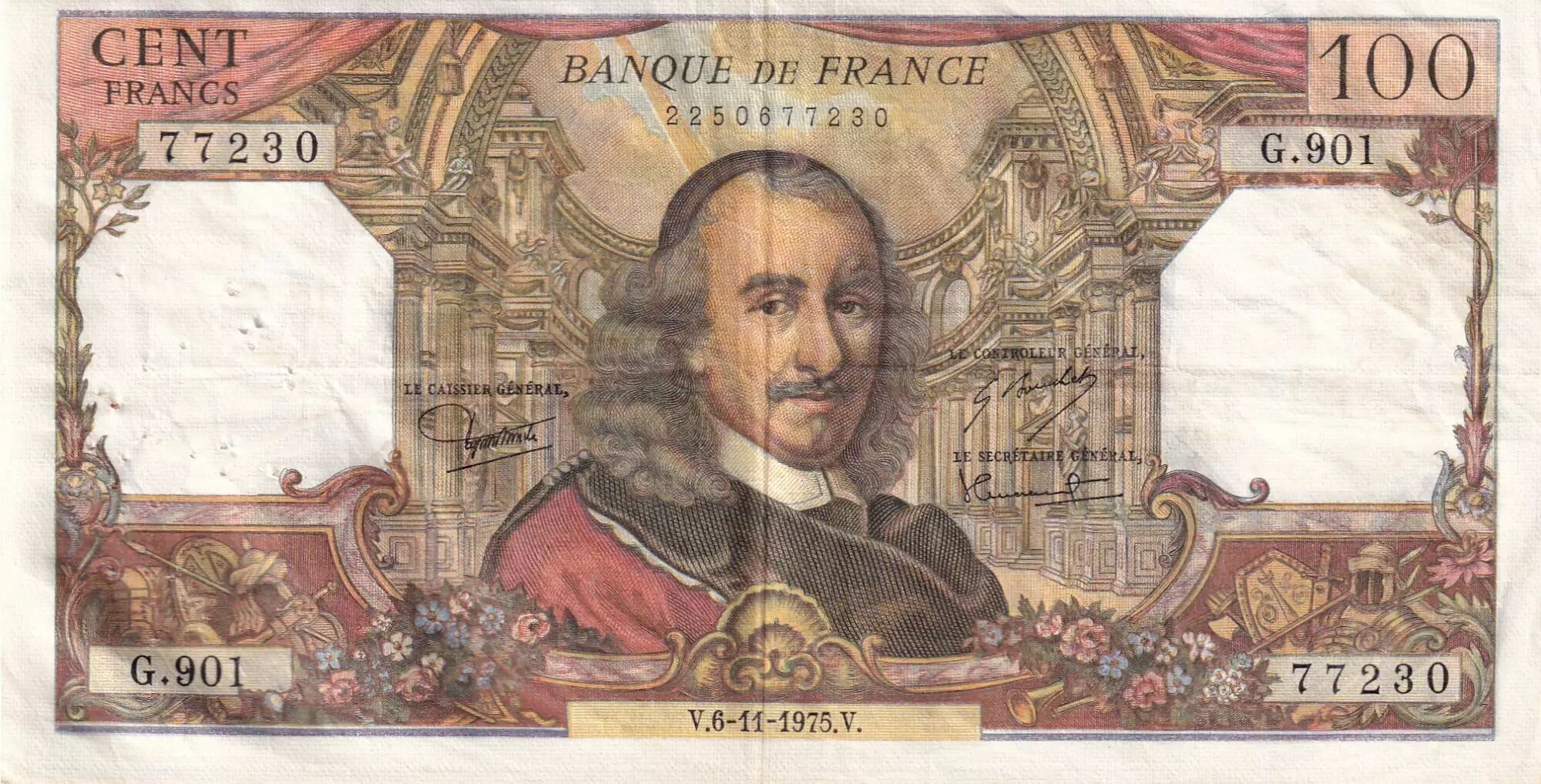 Accueil > Archivage > France 100 Francs - Corneille - 06-11-1975 - Série G.901