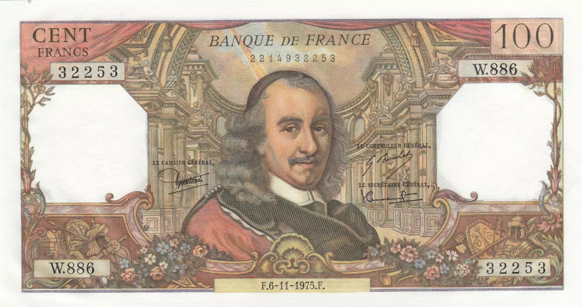 Billet France 100 Francs - Corneille - 06-11-1975 - Série W.886
