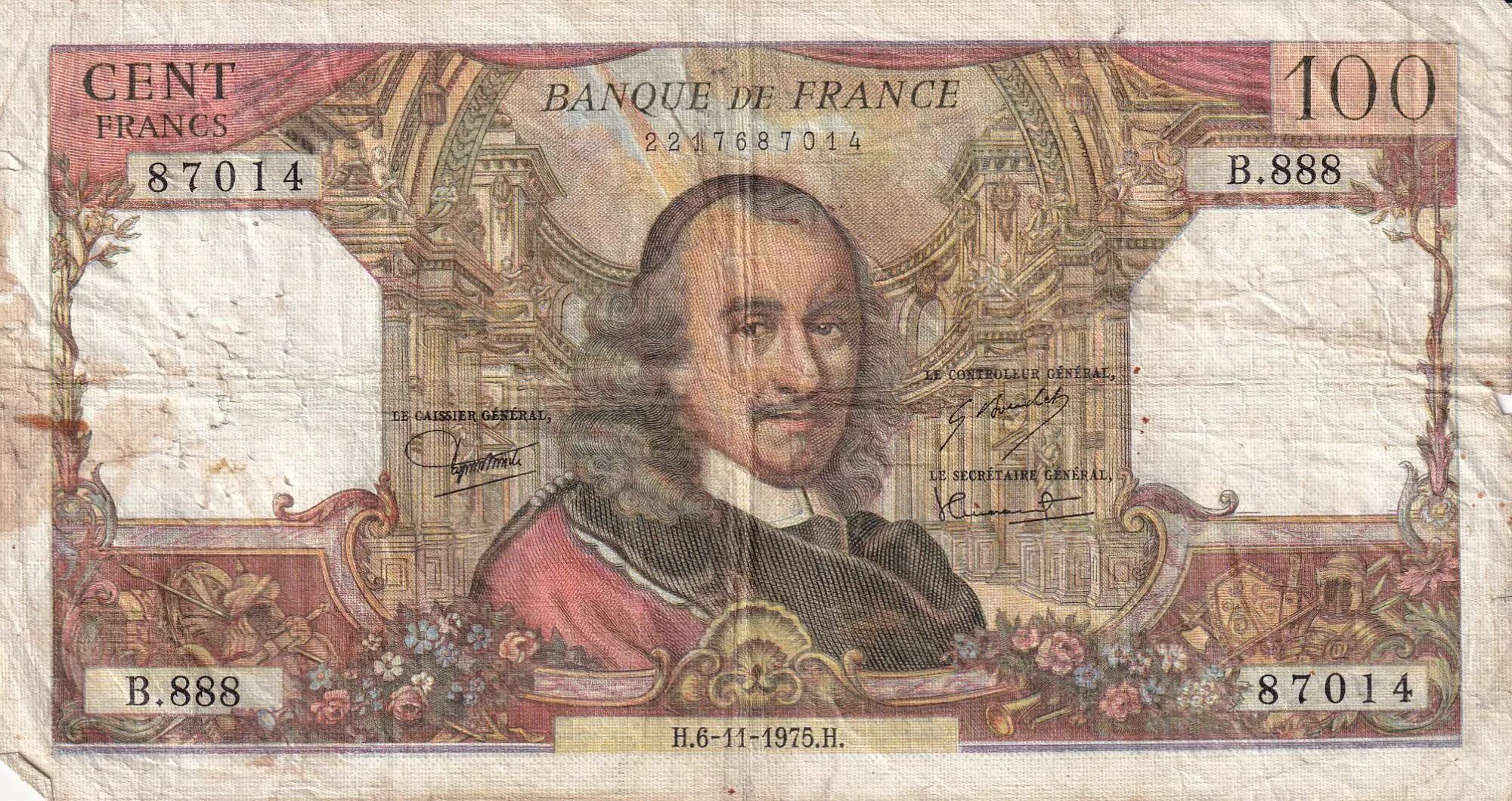 Banknote France 100 Francs Corneille - 06.11.1975 - Serial B.888
