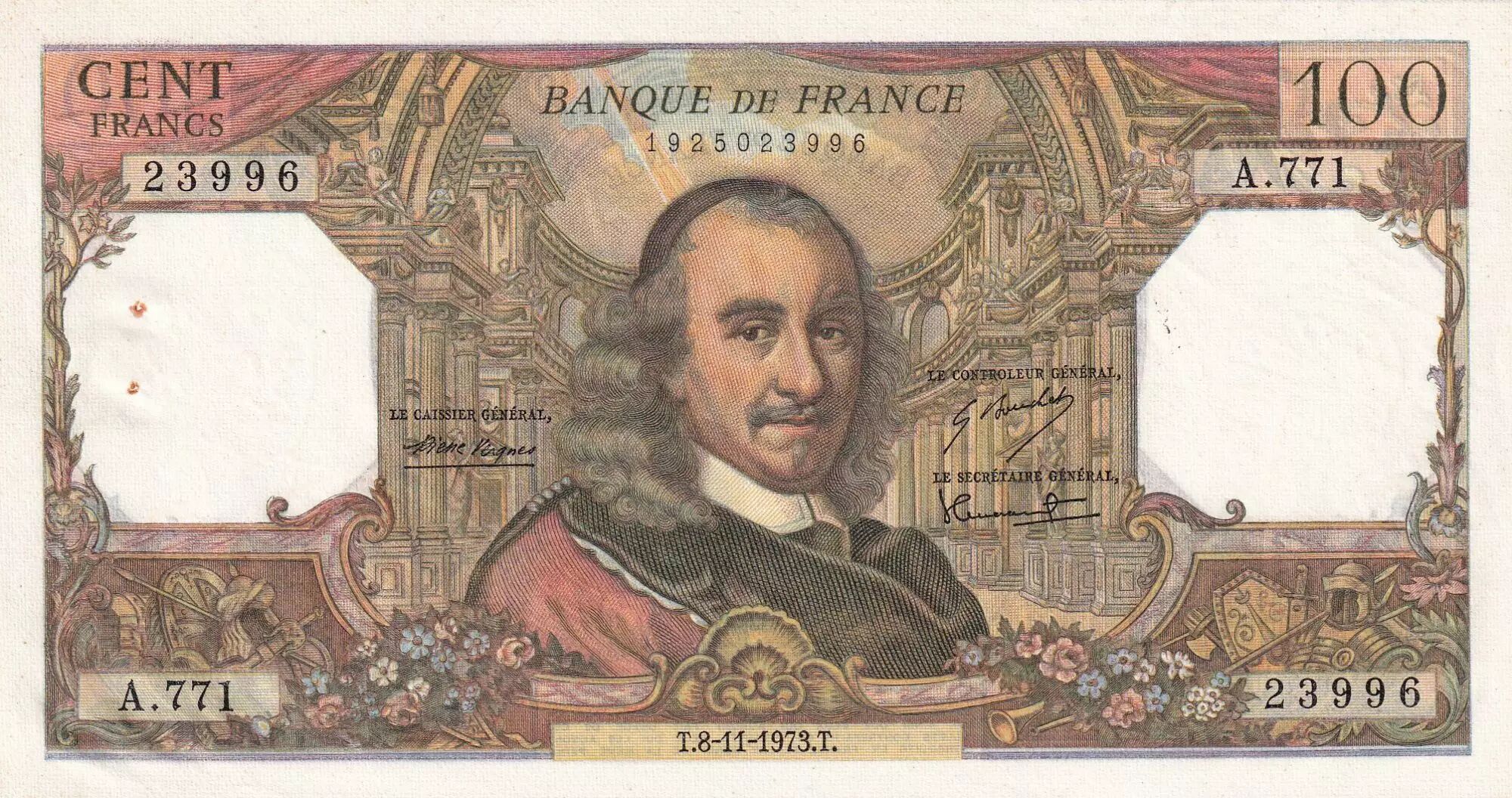 Banknote France 100 Francs - Corneille - 08-11-1973 - Serial A.771
