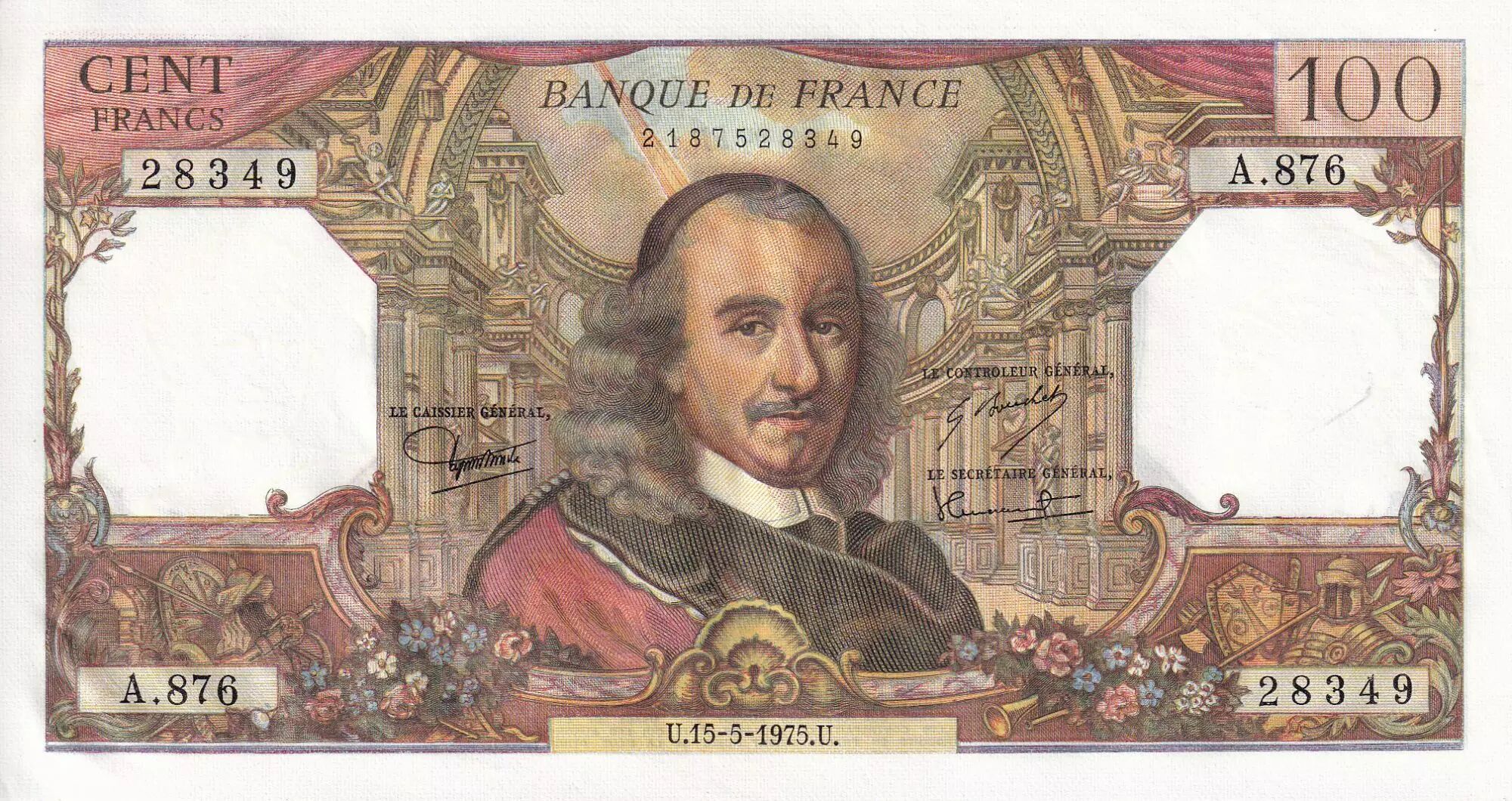 Accueil > Archivage > France 100 Francs - Corneille - 15-05-1975 - Série A.876 - SUP+ - F.65.49