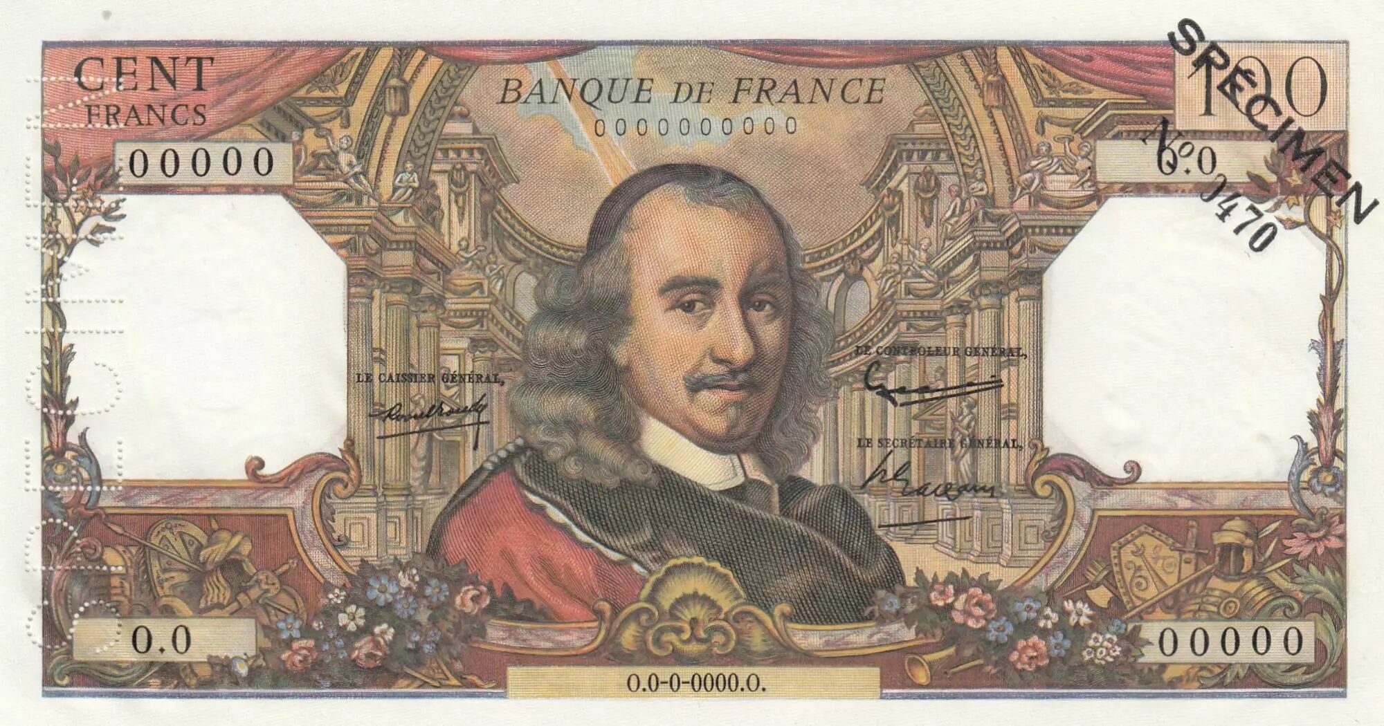 Accueil > Archivage > archivage-Billets Français > France 100 Francs - Corneille - Spécimen - 1964