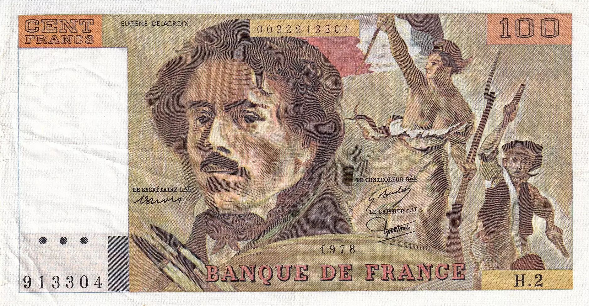 Banknote France 100 Francs - Delacroix - 1978 - Serial H.2 - P.154