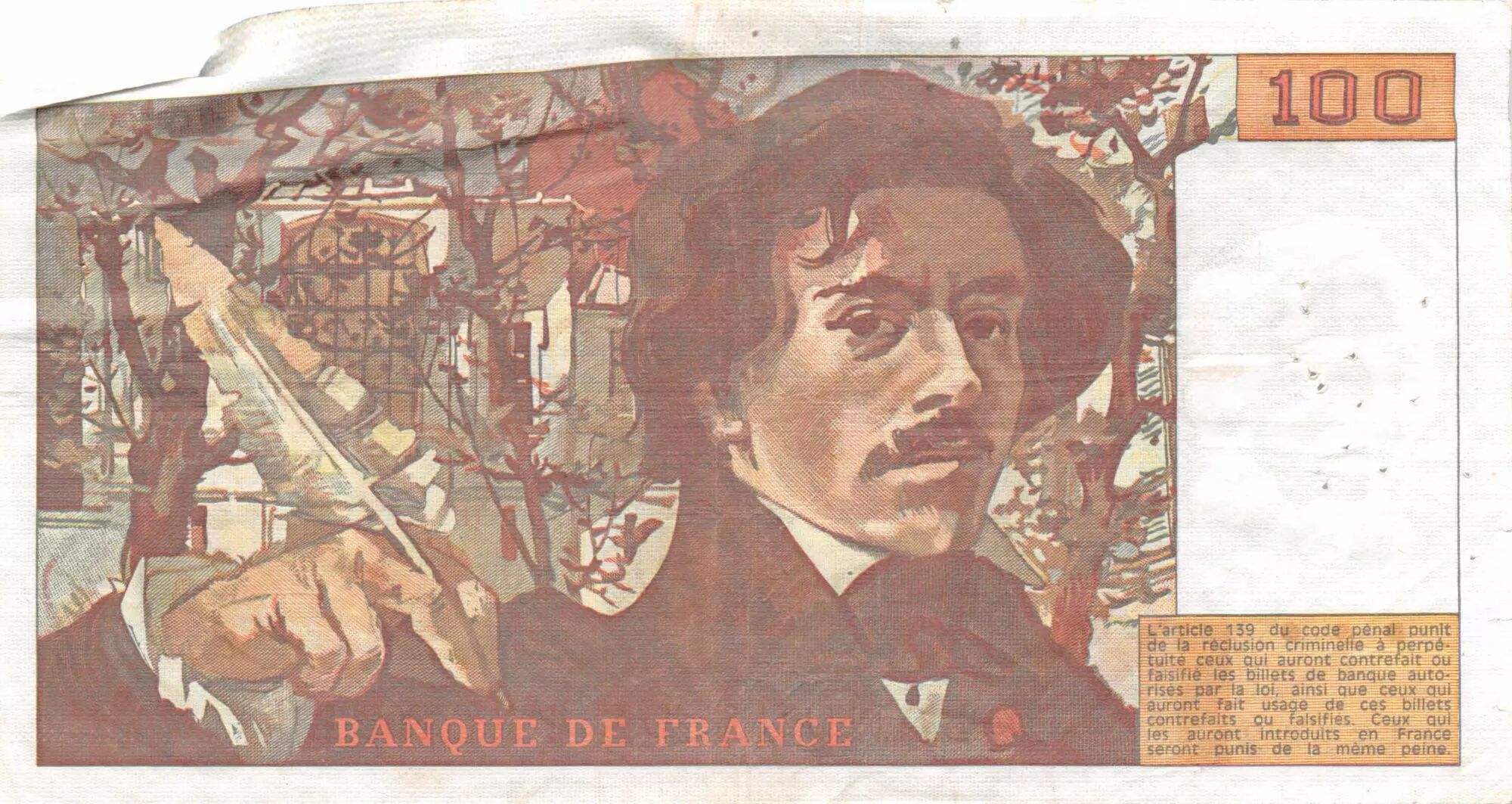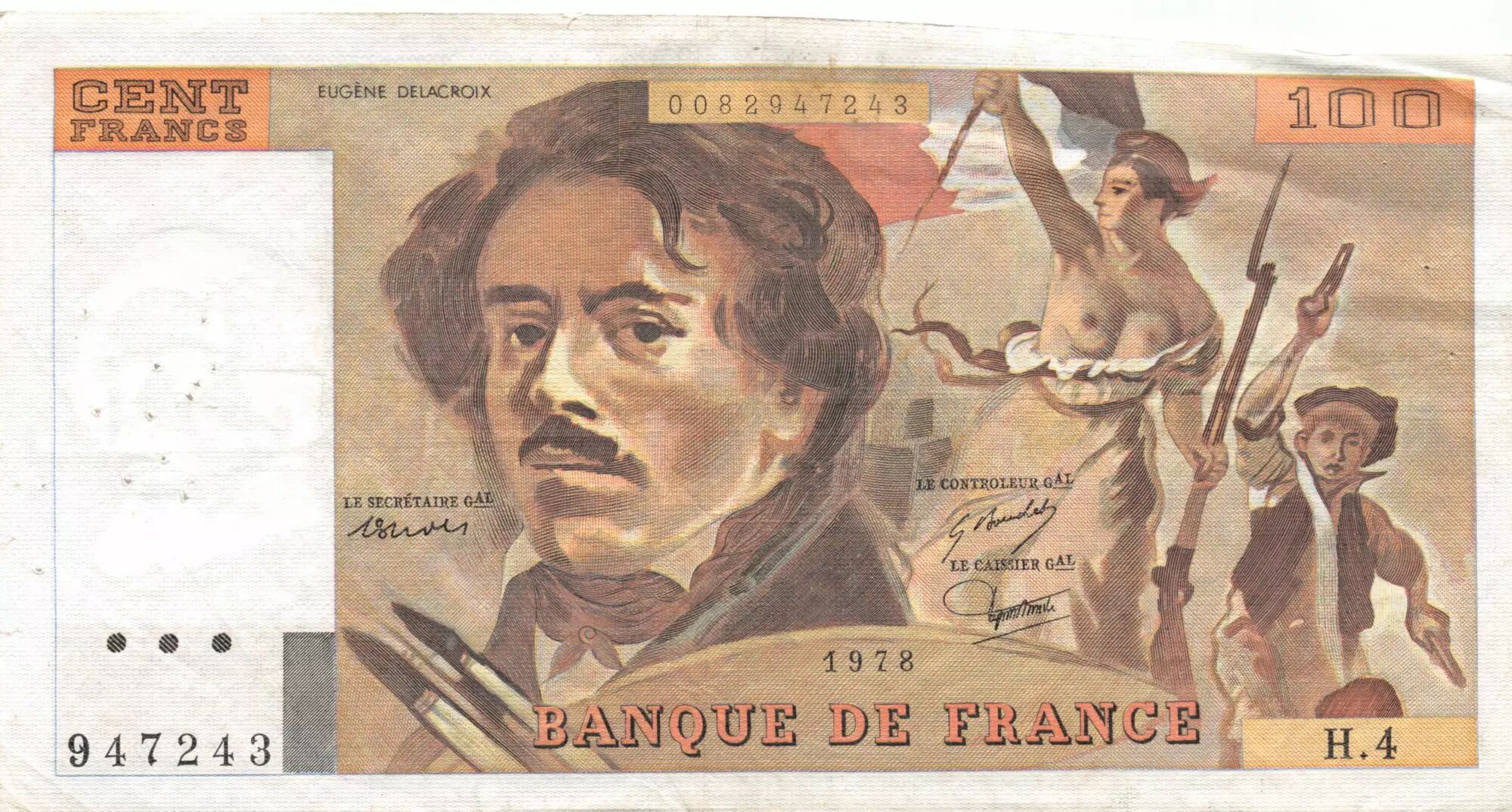 Banknote France 100 Francs Delacroix - 1978 Serial H.4-947243 - Hatched - VF
